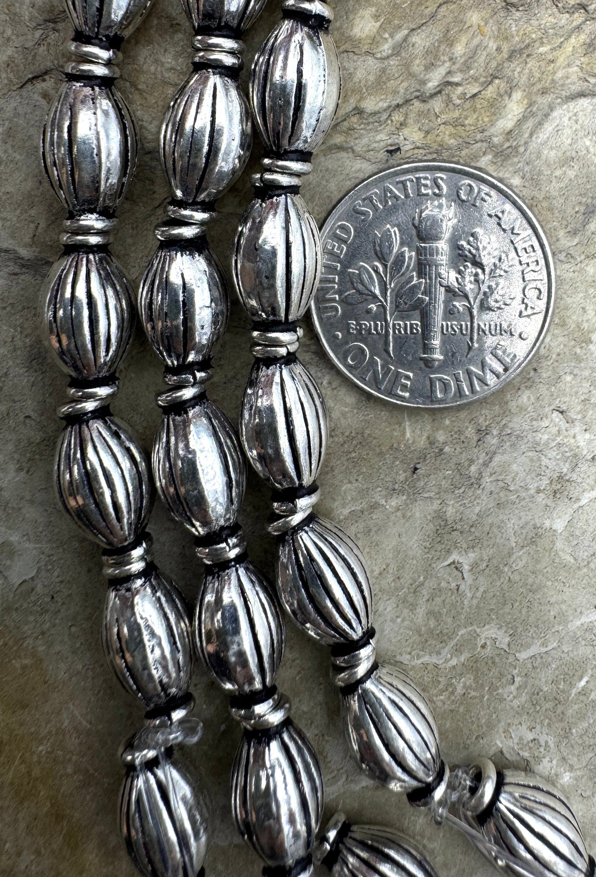 Sterling Silver Oxidized Beads, 6x11mm, 11 Bead Strand