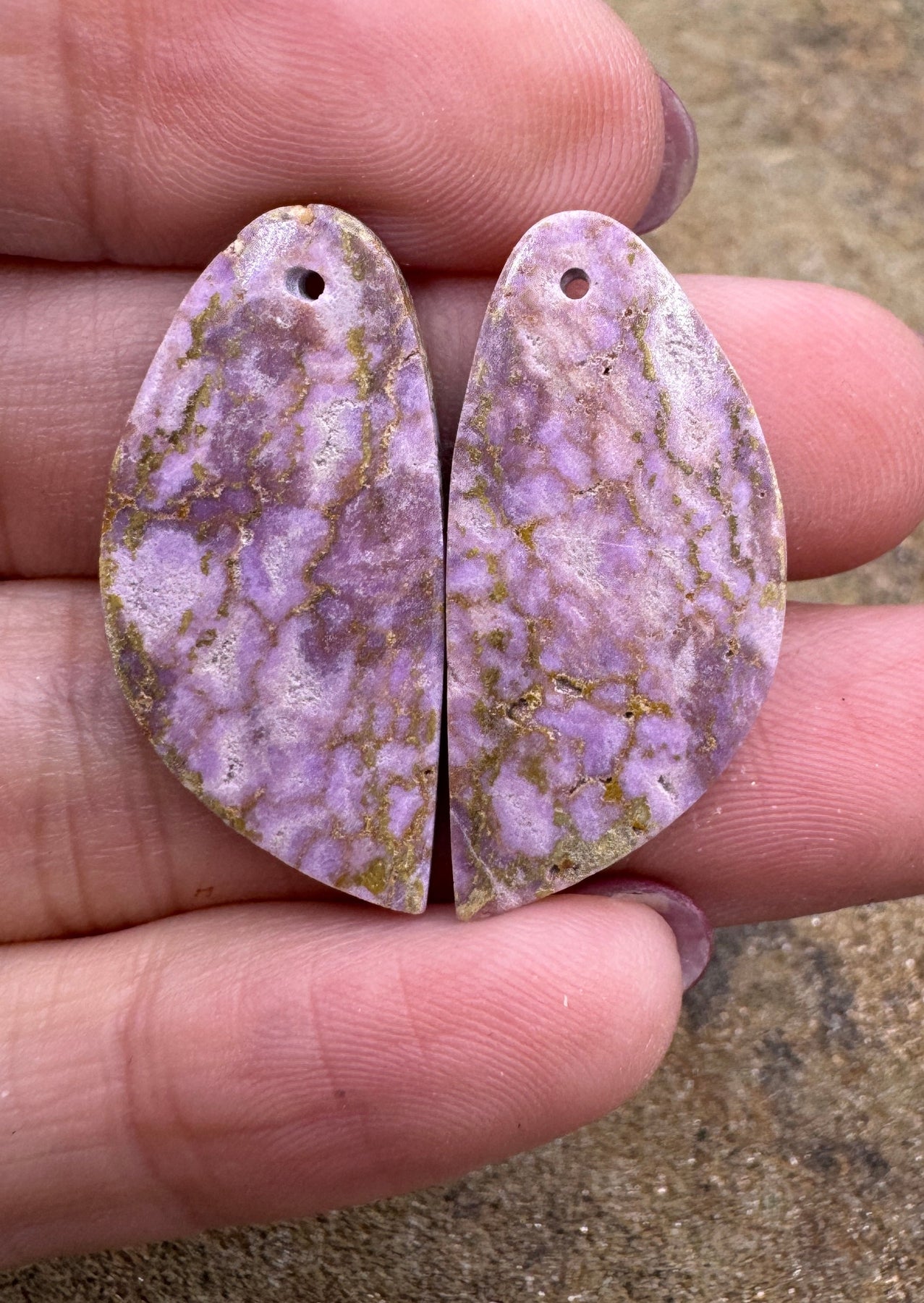 Phosphosiderite Matching Earring Slab Bead Pair 13x30mm