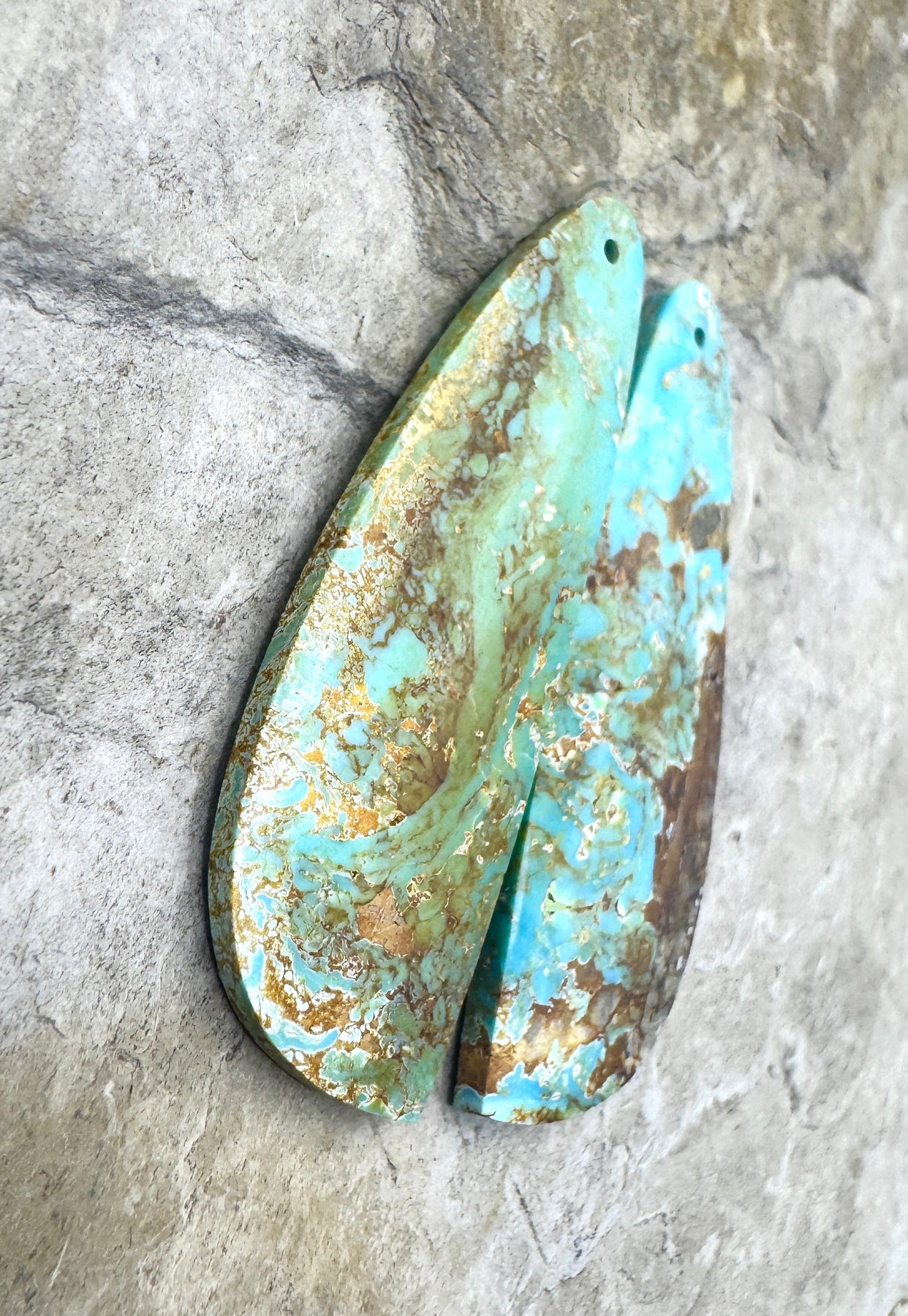 Pilot Mountain Turquoise (Nevada) Large Earring Slab Bead Pair, 16x43mm