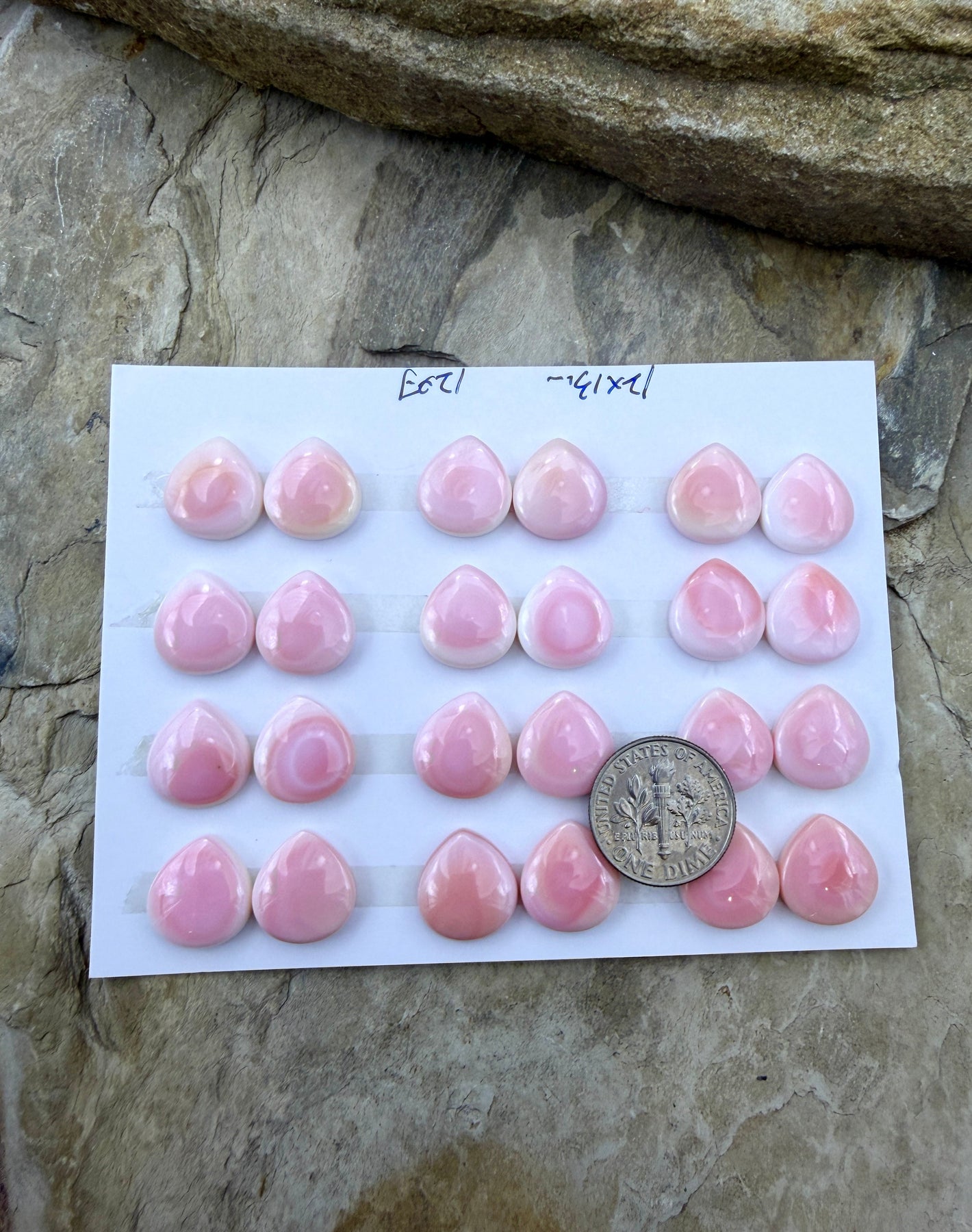 Pink Queen Conch 12x13mm Calibrated Teardrop Cabochons, One Pair