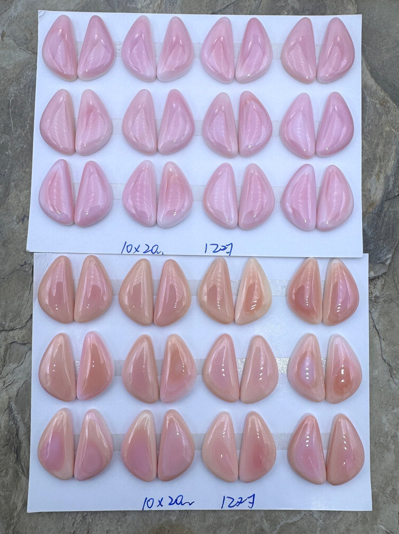 Pink Queen Conch 10x20mm Calibrated Freeform Cabochons, One Pair