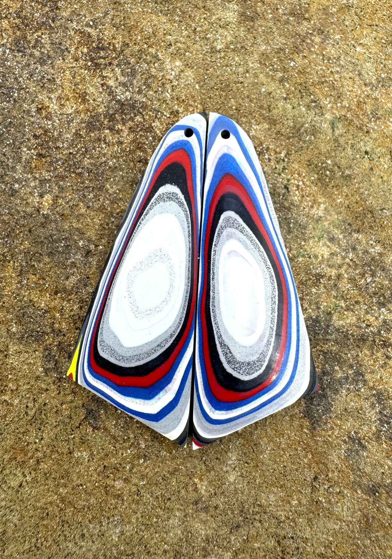 Priemium Fordite/Detroit Agate BIG Earring Slab Bead Pair 16x43mm