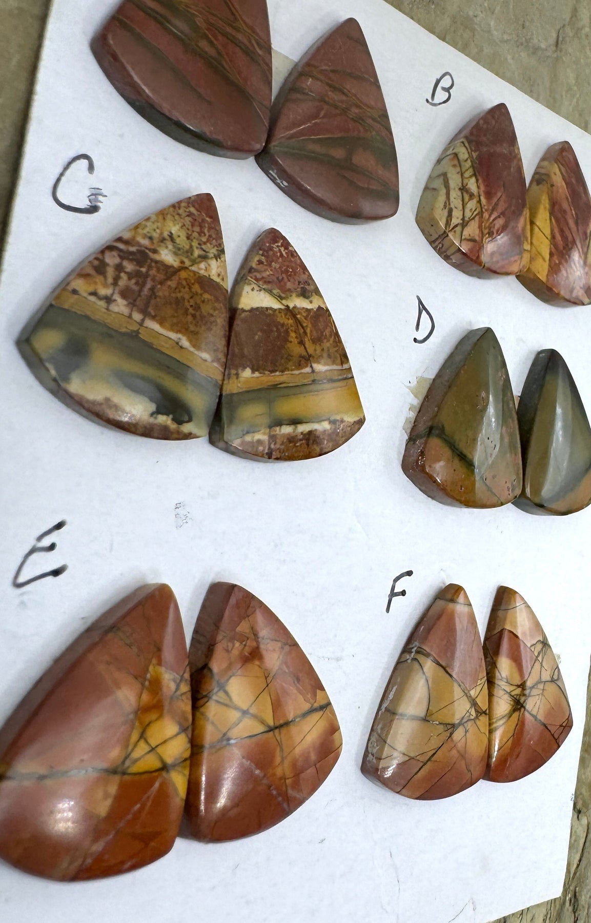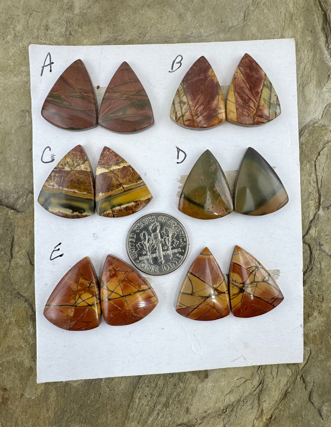 Red Creek Jasper Matching Cabochon Pairs 15x21mm (Only B,D & E available)