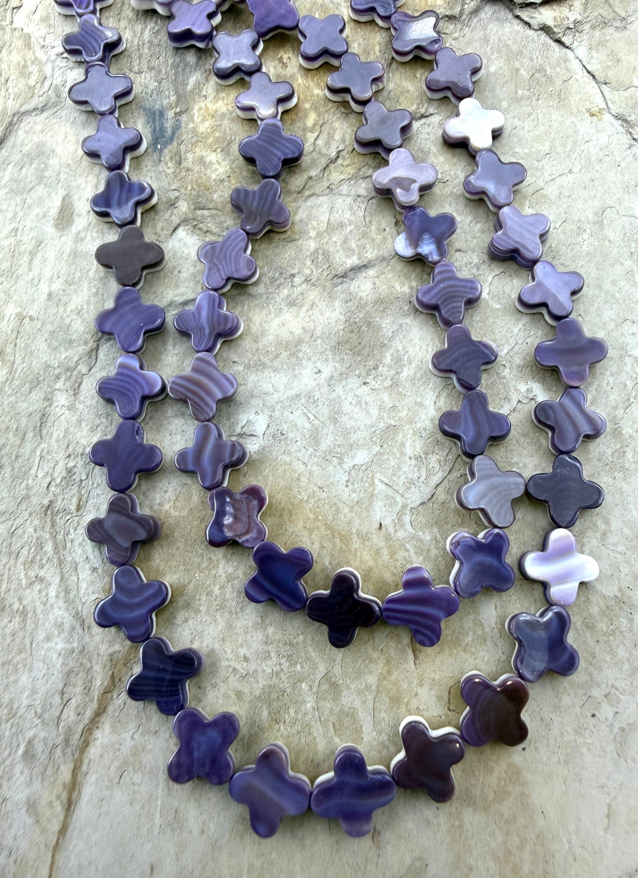 Purple Wampum/Quahog Shell 10mm Rounded Cross Beads, 16 Inch Strand/41 Beads