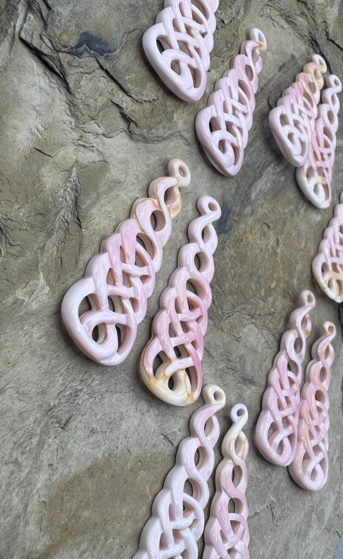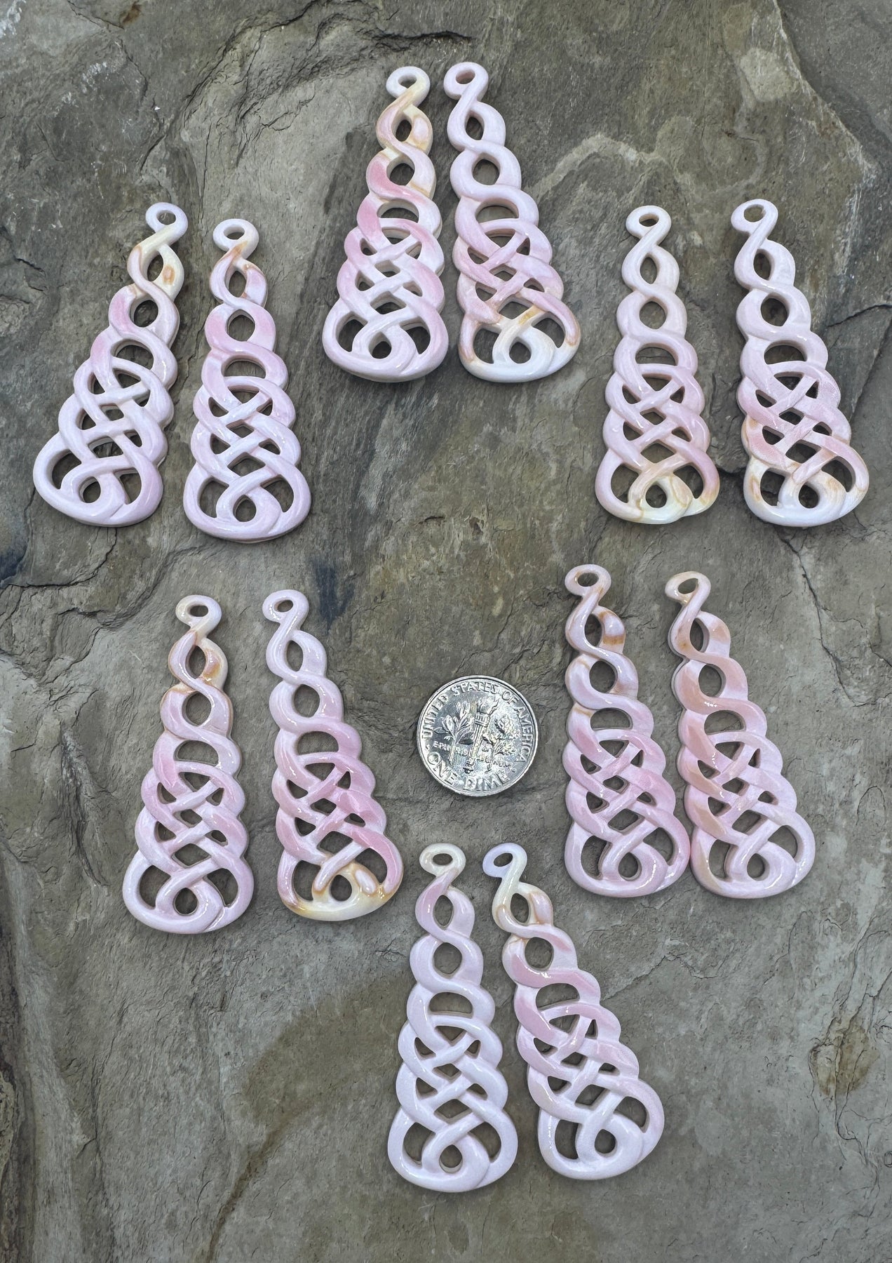Pink Queen Conch Shell Carved Earring Bead Pairs 8x50mm, One Pair