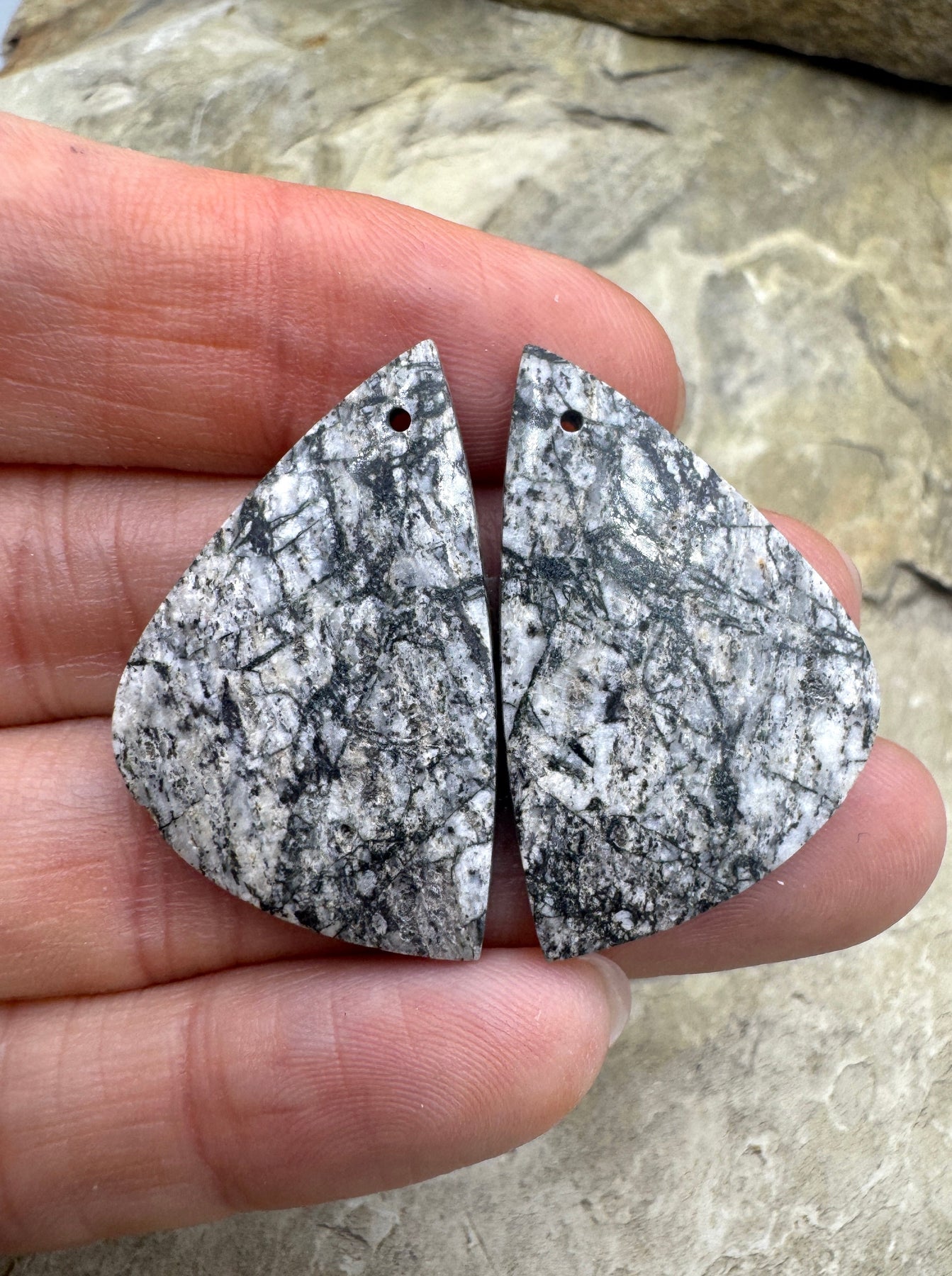 RARE White Buffalo (Arizona) Matching Earring Slab Bead Pair 21x34mm