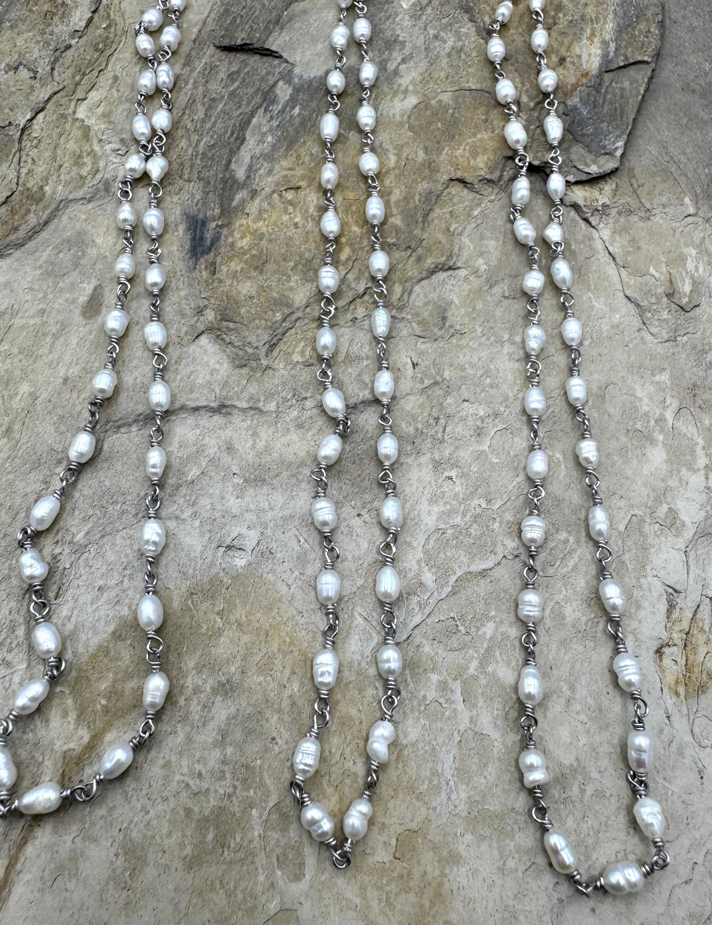 Sterling Silver Handmade Chain with 4x5mm Freshwater Pearls, 13 Inch Piece