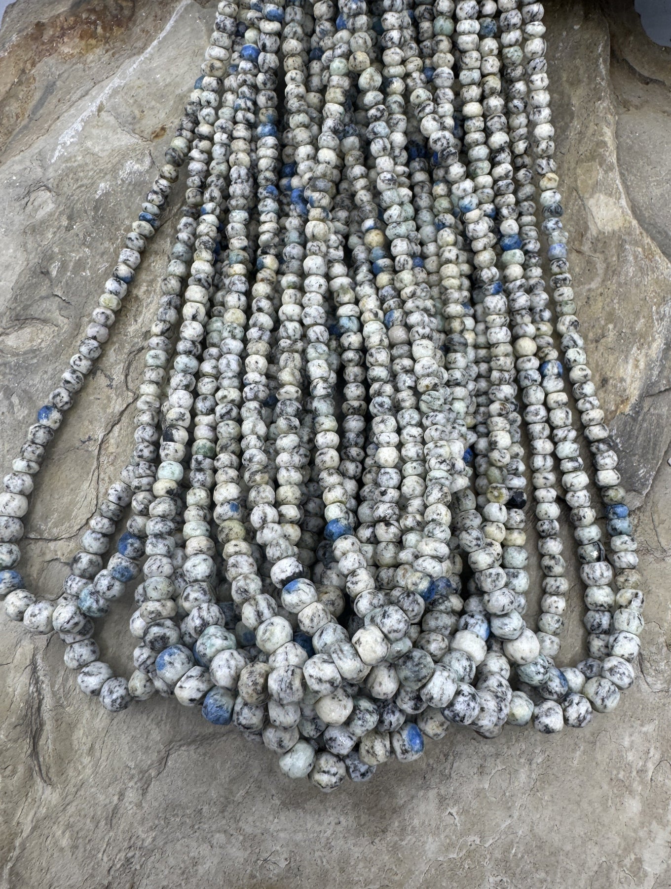 K2 jasper, also known as K2 granite or Raindrop Azurite, is exclusively found in the K2 Mountain Range in Pakistan. This unique stone is a granite gneiss containing bright blue azurite spots, which are thought to have formed from a weathered layer of copper-carbonate.