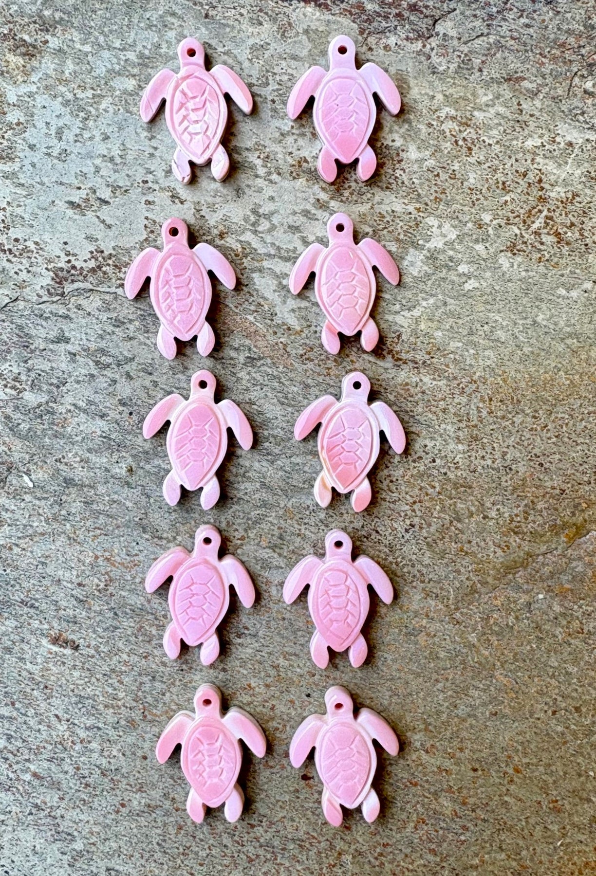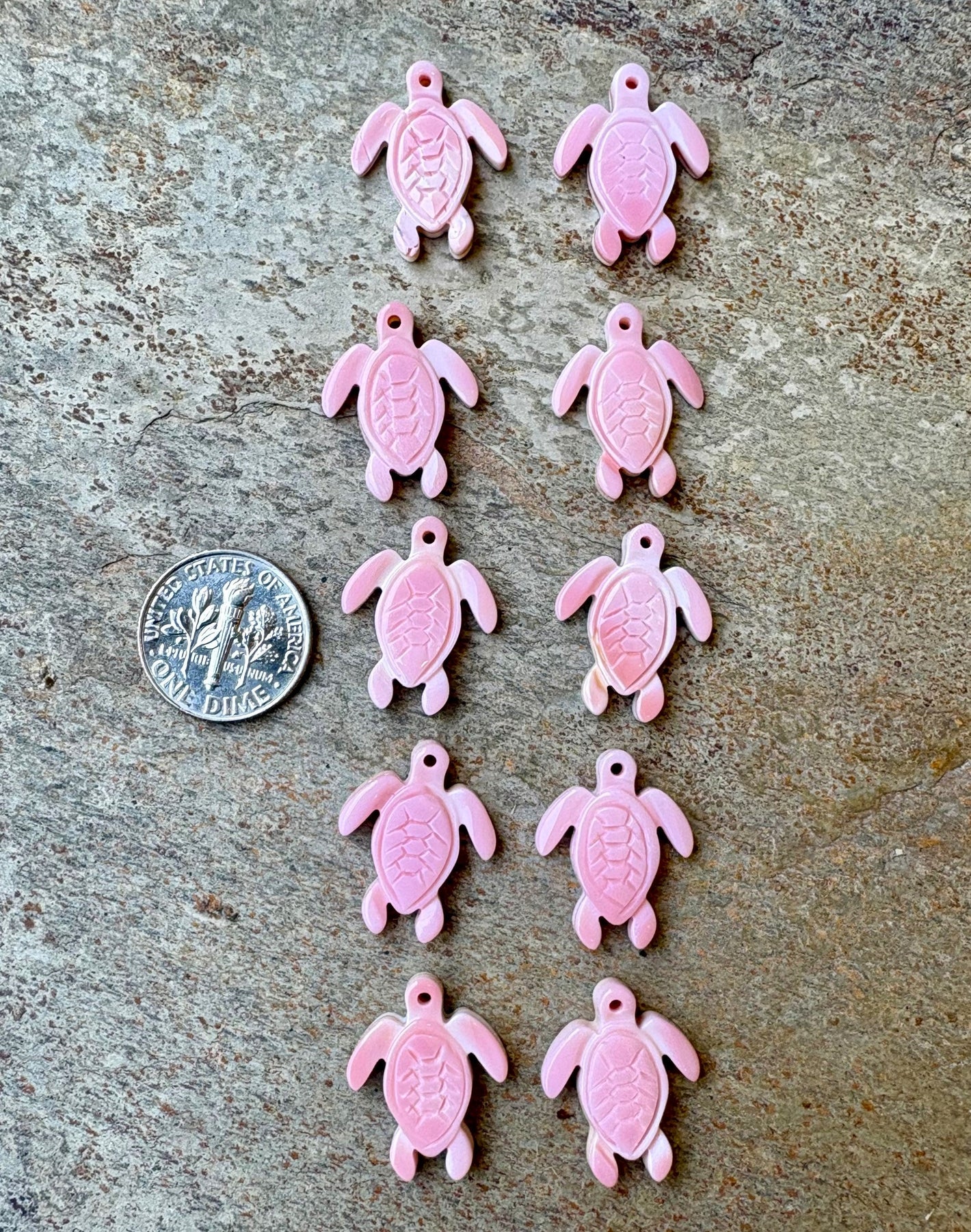 Pink Queen Conch Carved Turtle Beads, Package of 2 Beads