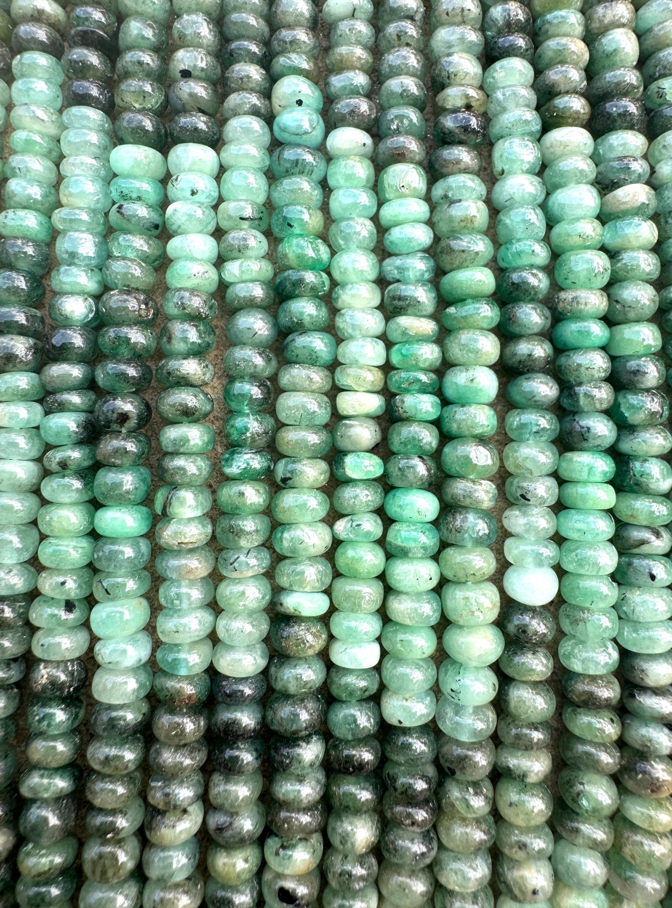 Natural Emerald 5mm Rondell Shaped Beads, 15 inch Strand