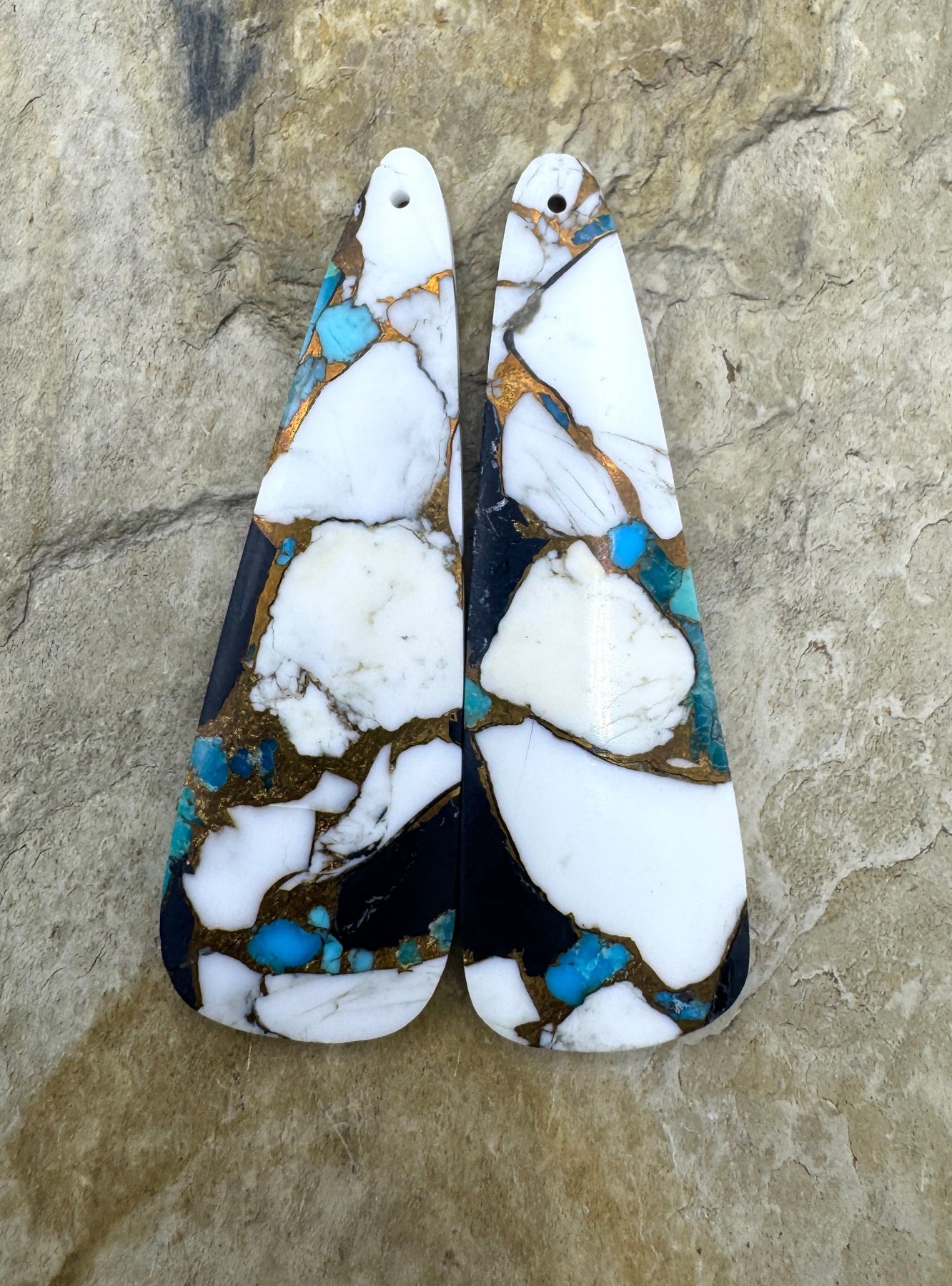 White Buffalo, Kingman Turquoise and Bronze Composite, HUGE Matching Earring Slab Bead Pair 19x57mm