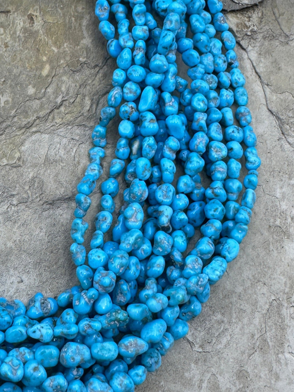 We travel to hand-select all of our genuine turquoise beads, turquoise nugget strands and turquoise cabochons. Selecting the highest quality we can find, choose from our selection of turquoise shaped beads, one-of-a-kind turquoise focal pendant nuggets and beads, turquoise specimens for wire wrapping and natural turquoise cabochon stones. Ready to wear wire wrapped turquoise nuggets for necklace pendants.