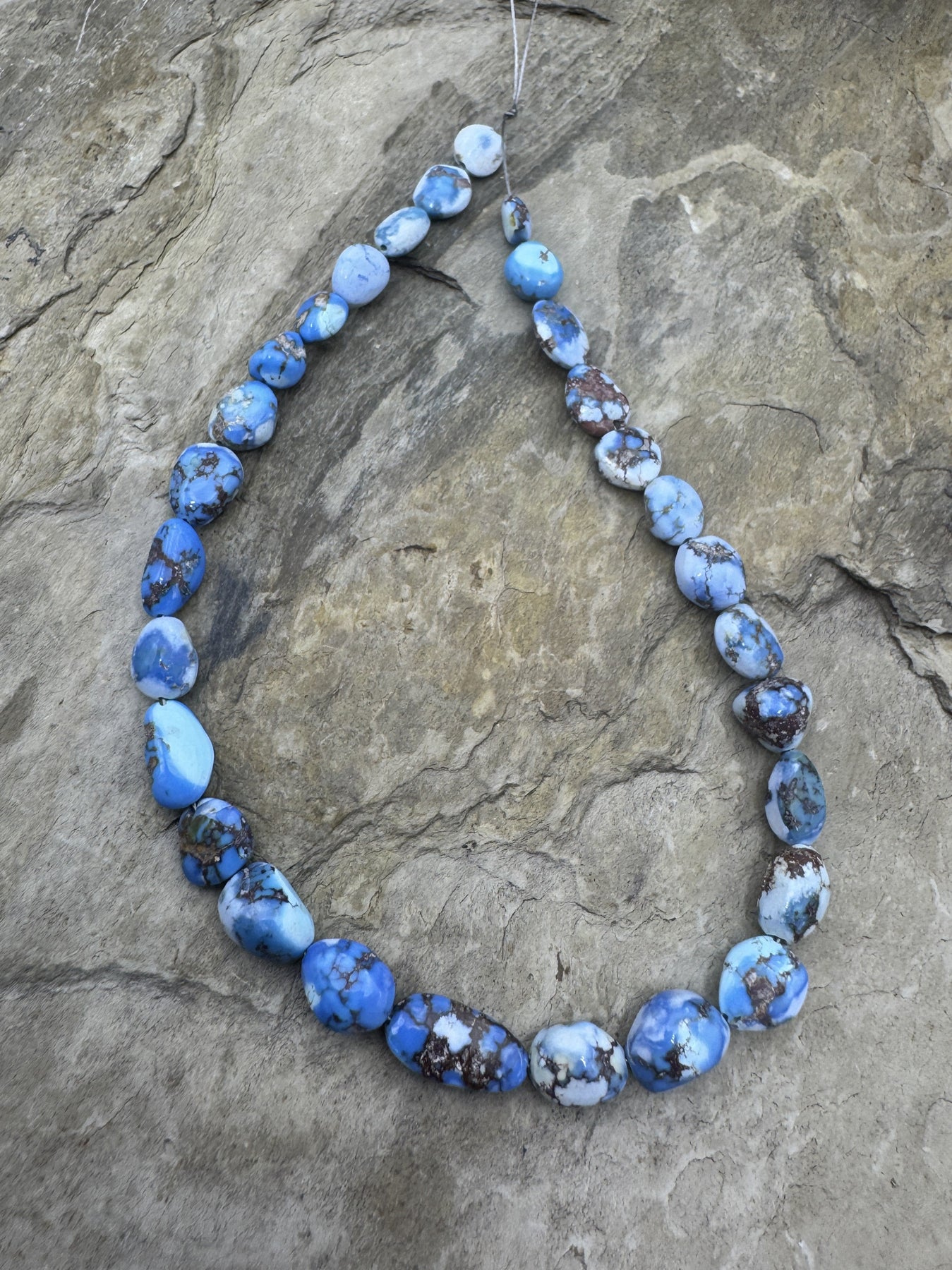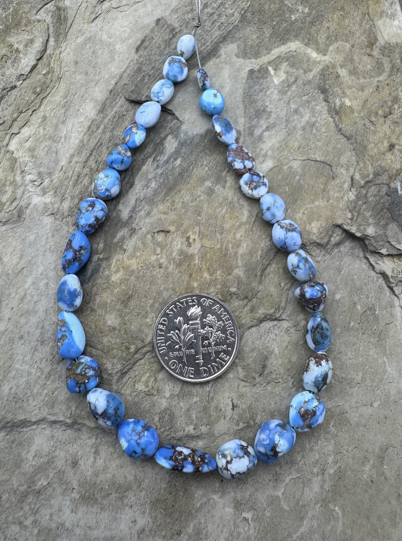 RARE Golden Hills Turquoise (Kazakhstan) 5mm-6x12mm Irregular Rounded Nugget Beads 8.5 Inch Strand (29 Beads)