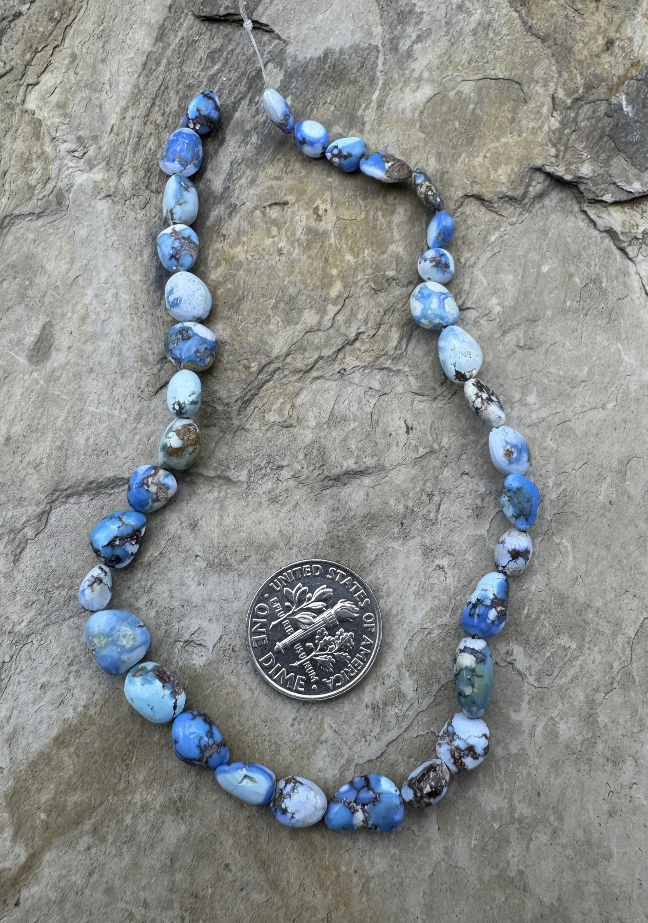 RARE Golden Hills Turquoise (Kazakhstan) 4mm-6x9mm Irregular Rounded Nugget Beads 9 Inch Strand (34 Beads)