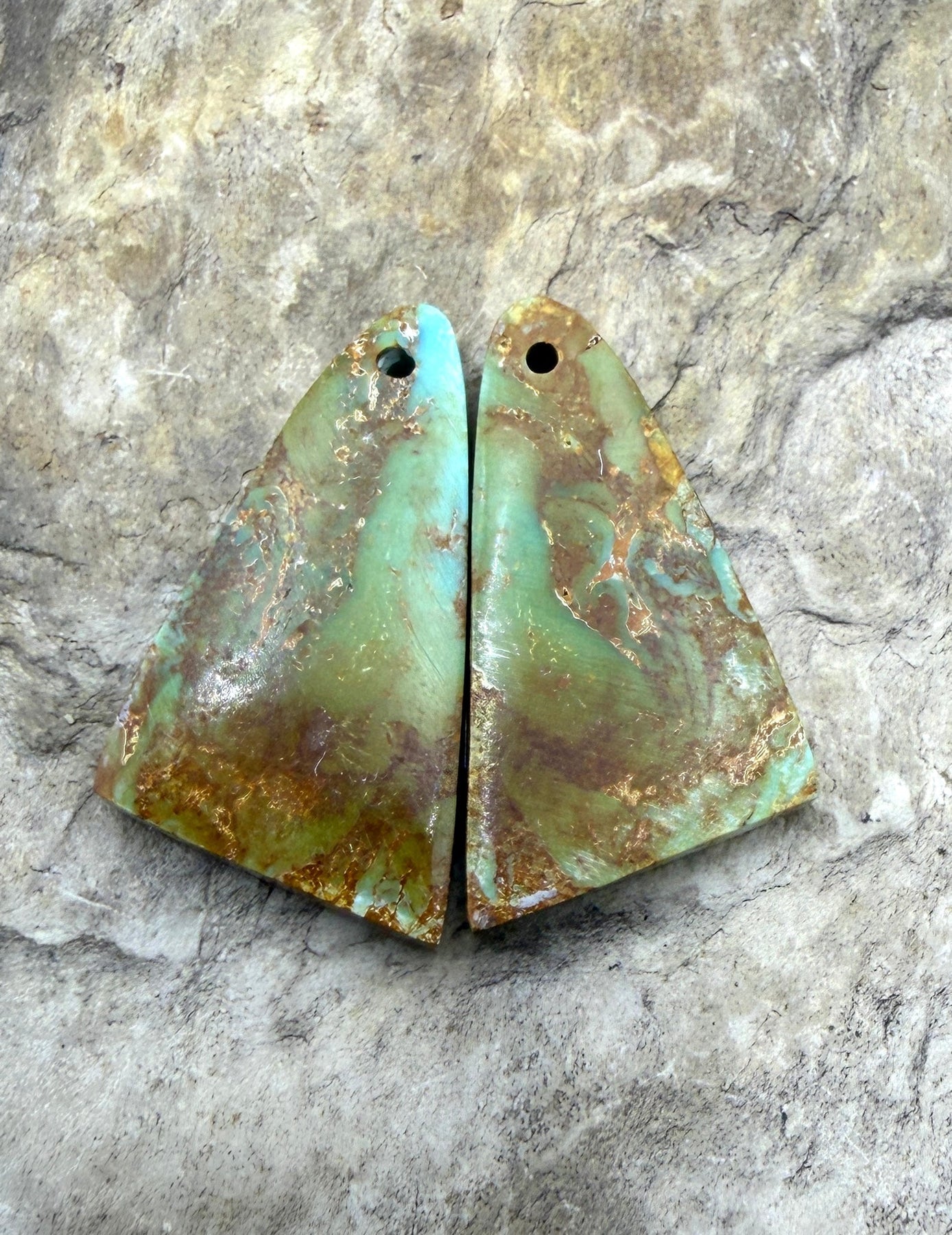 Pilot Mountain Turquoise (Nevada) Matching Earring Slab Bead Pair 12x25mm