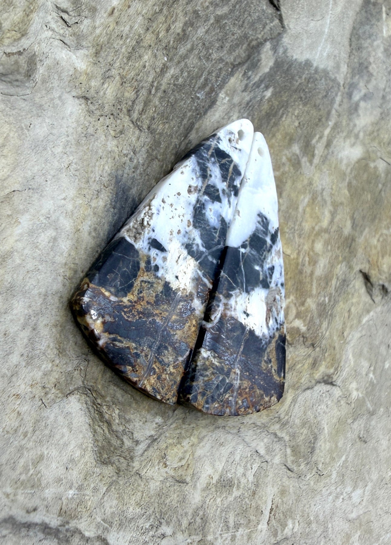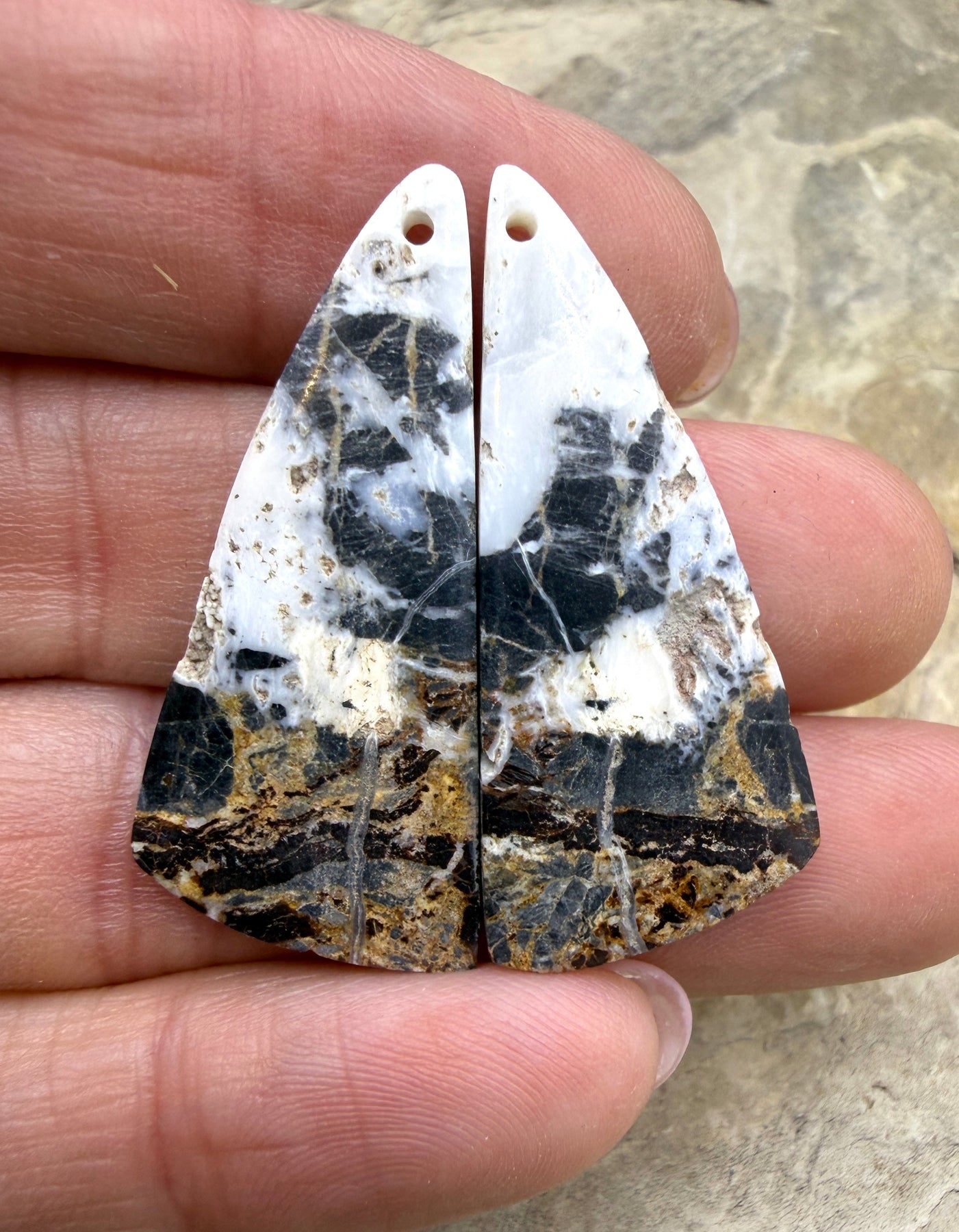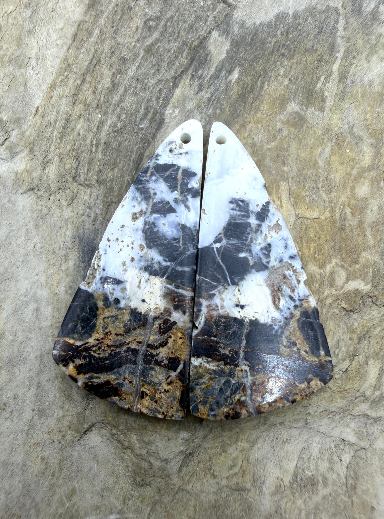 RARE High Quality White Buffalo (Nevada) Matching Earring Slab Bead Pair 16x36mm