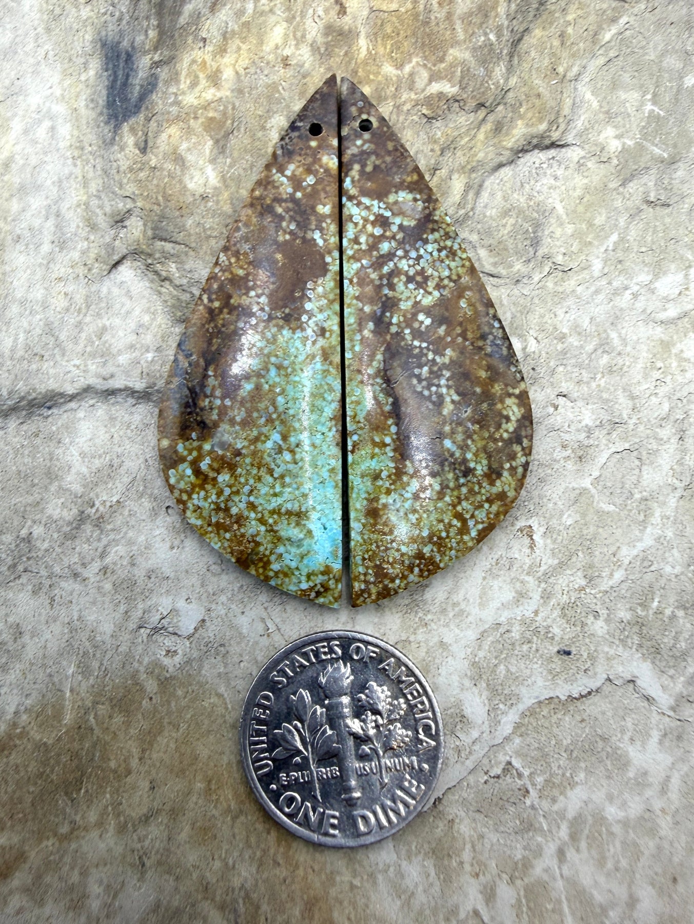 RARE Number 8 Turquoise (Nevada) BIG Matching Earring Slab Bead Pair 16x49mm