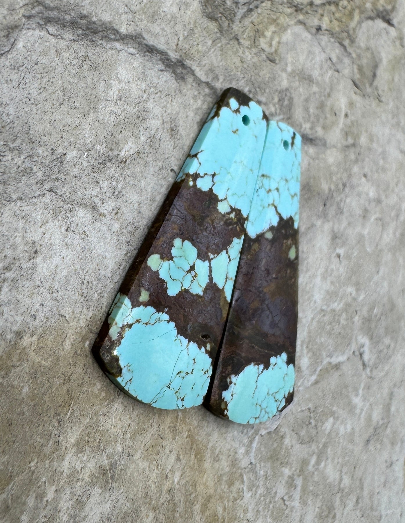 RARE Number 8 Turquoise (Nevada) Matching Earring Slab Bead Pair 15x35mm