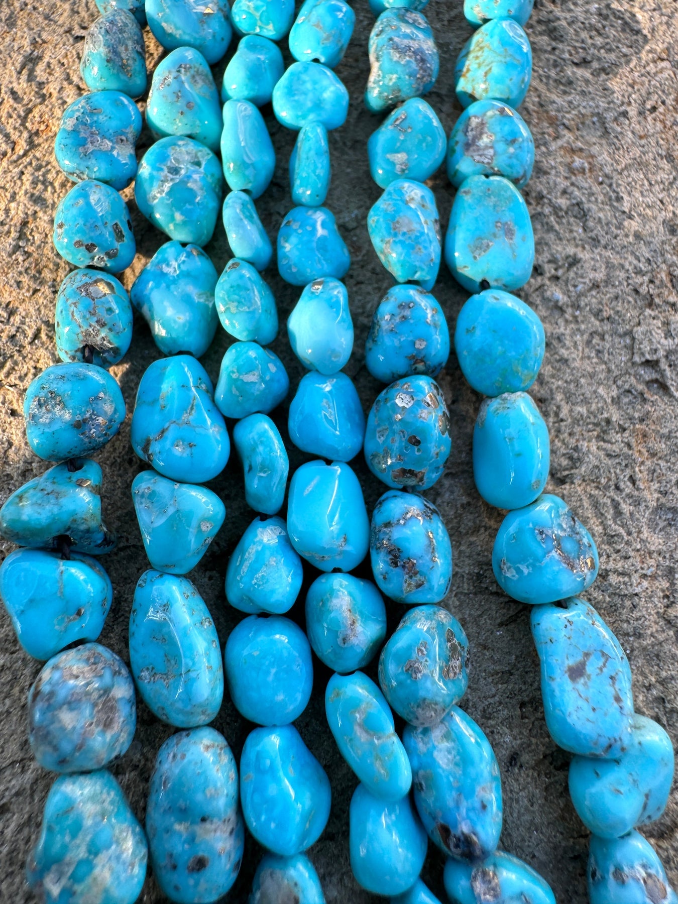 Beautiful Robin's Egg Blue with white matrix and pyrite. These strands are high quality material.