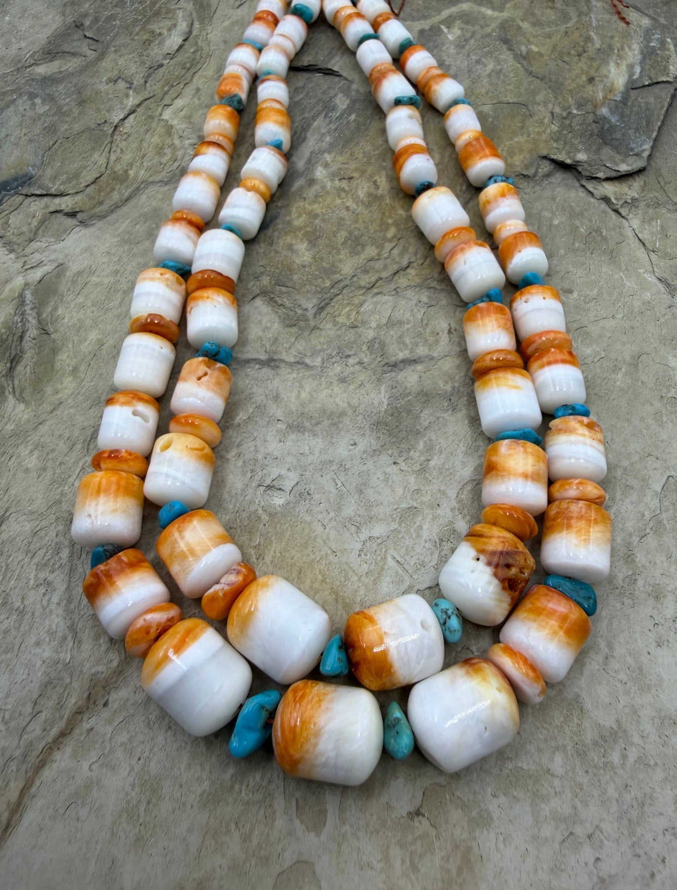 Orange Spiny Oyster with Turquoise Graduated Designer Strand 5x7-10x13mm