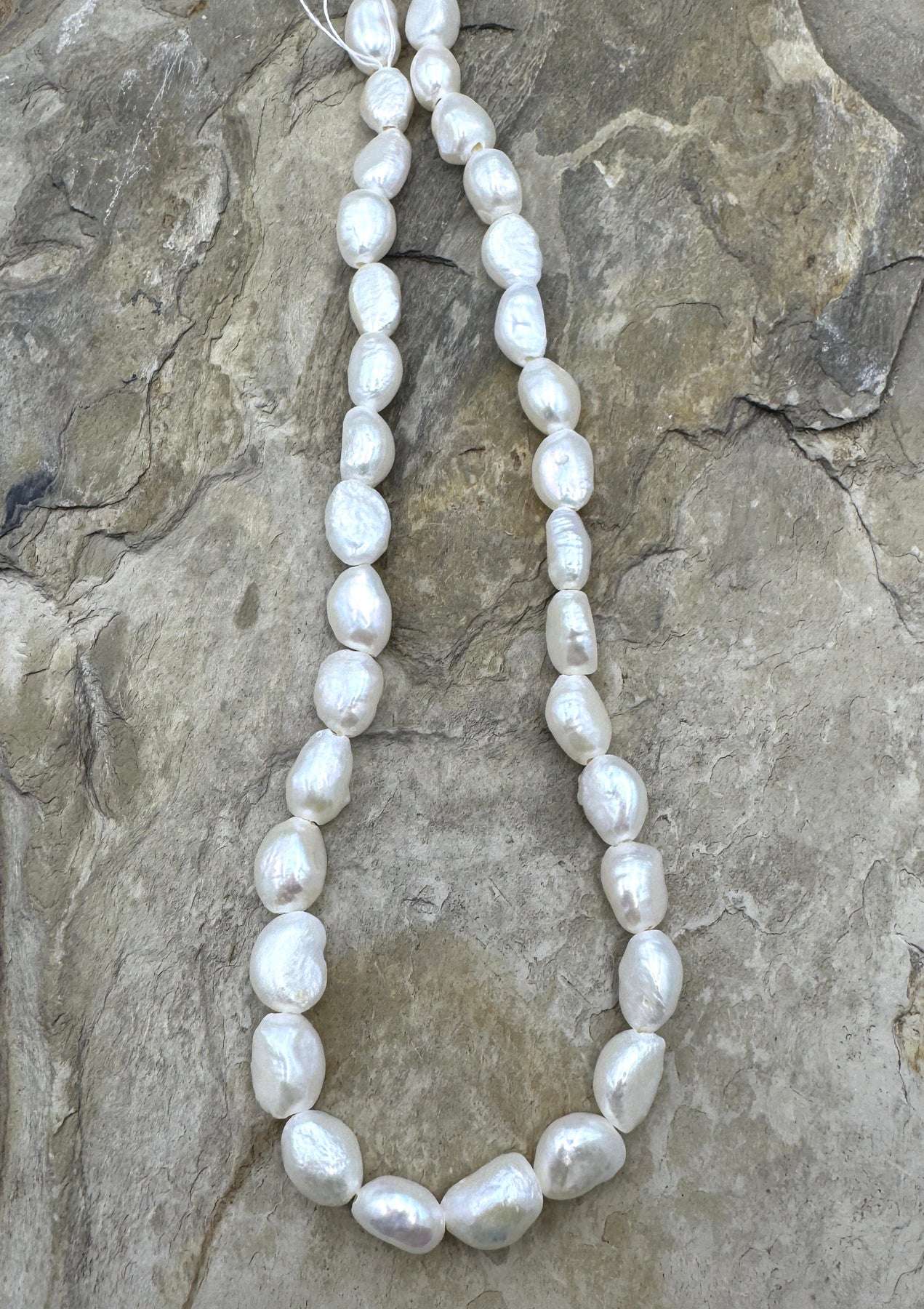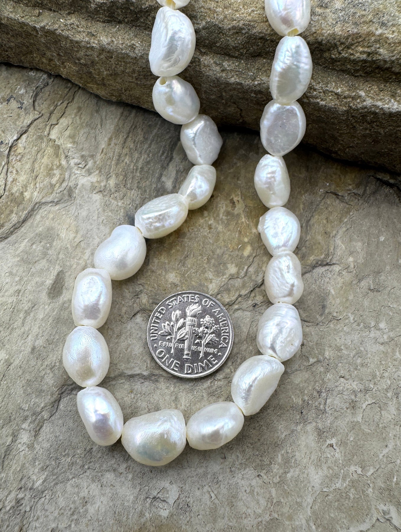 Fresh Water Baroque Irridecent White Large Hole Pearls 8x12mm irregular shape, 15.5 inch Strand