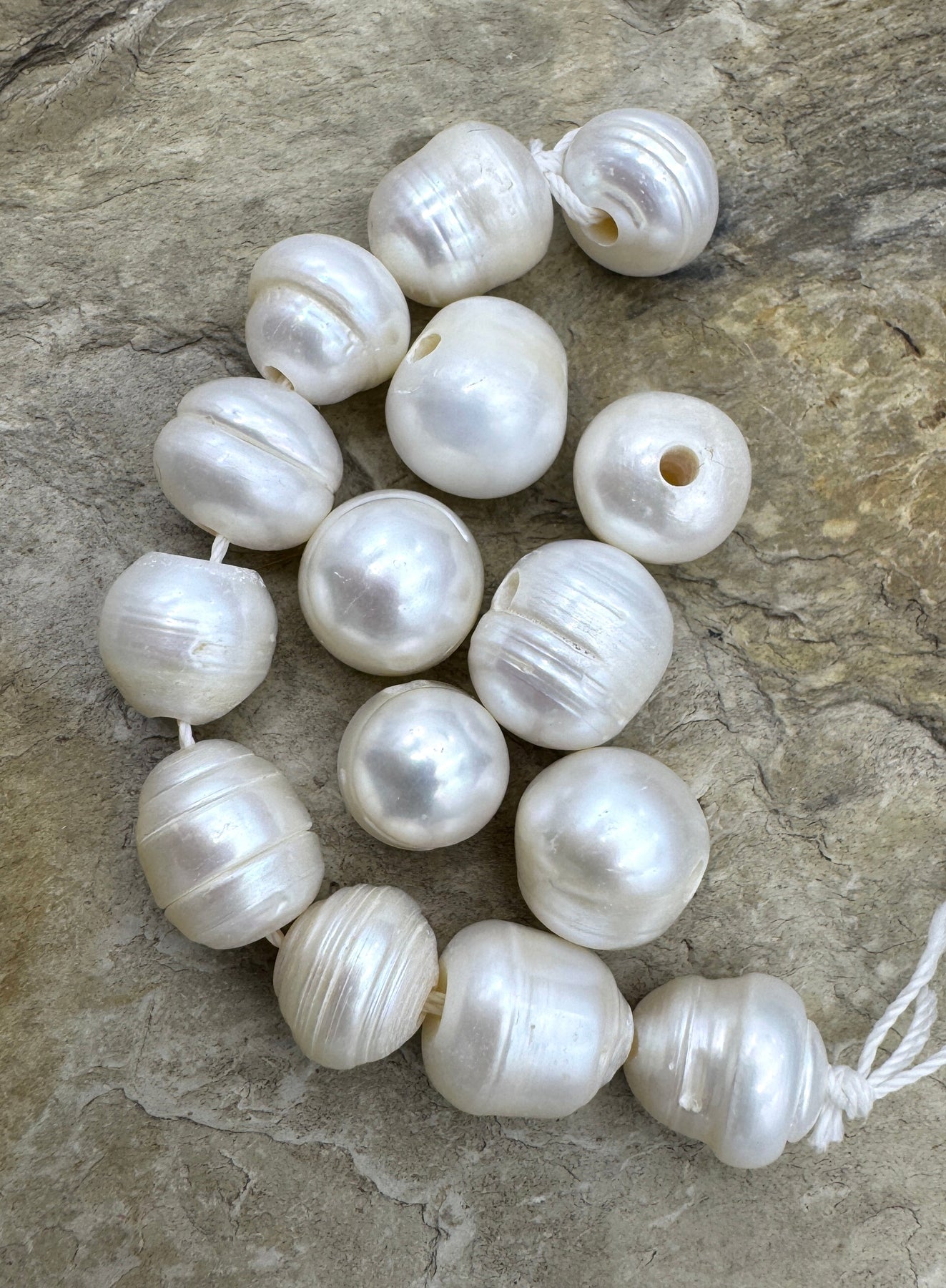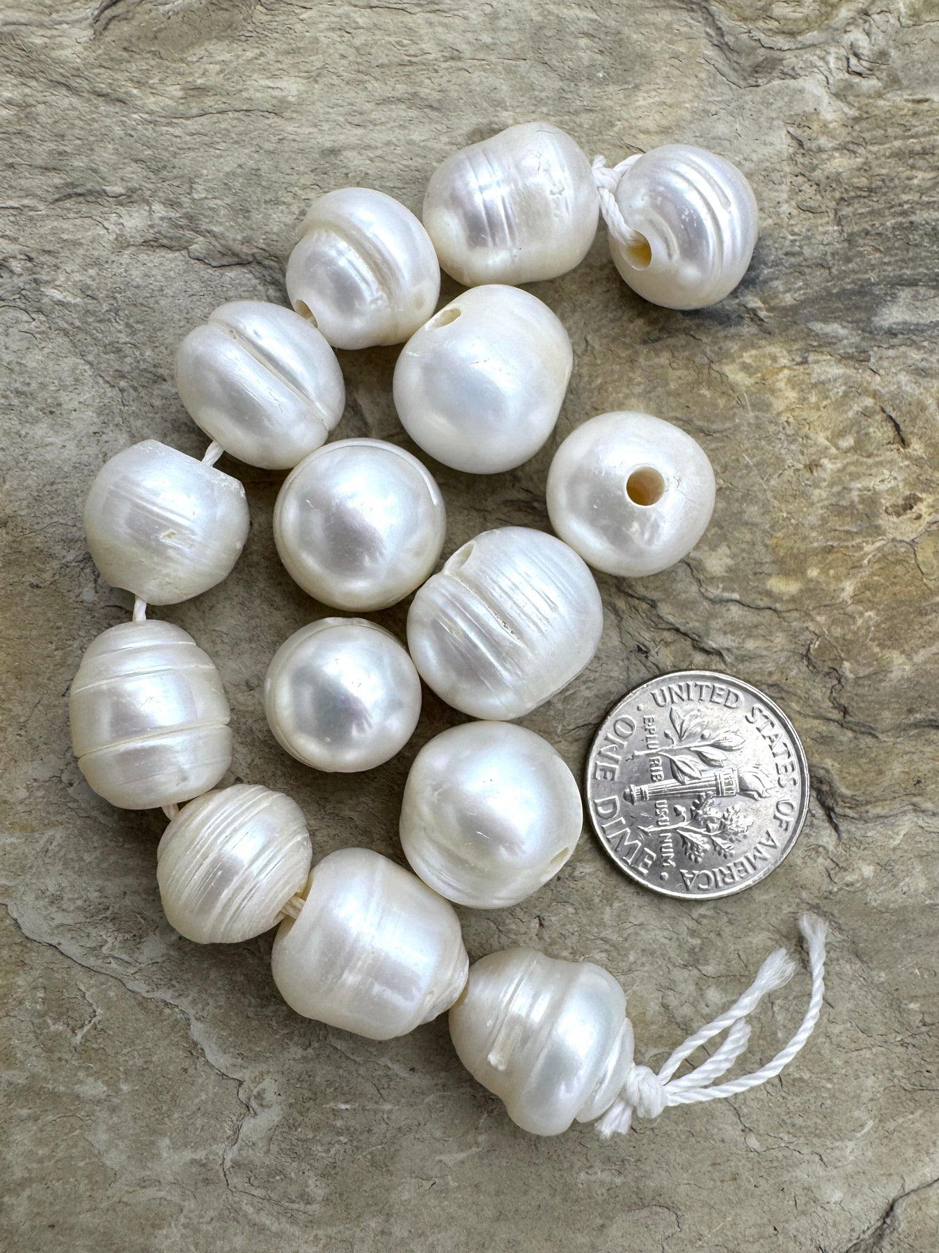 LOT of 15 11-14mm Large Hole Ringed Pearls, 15 Pearls