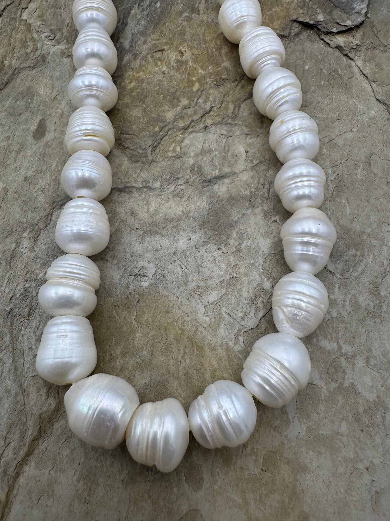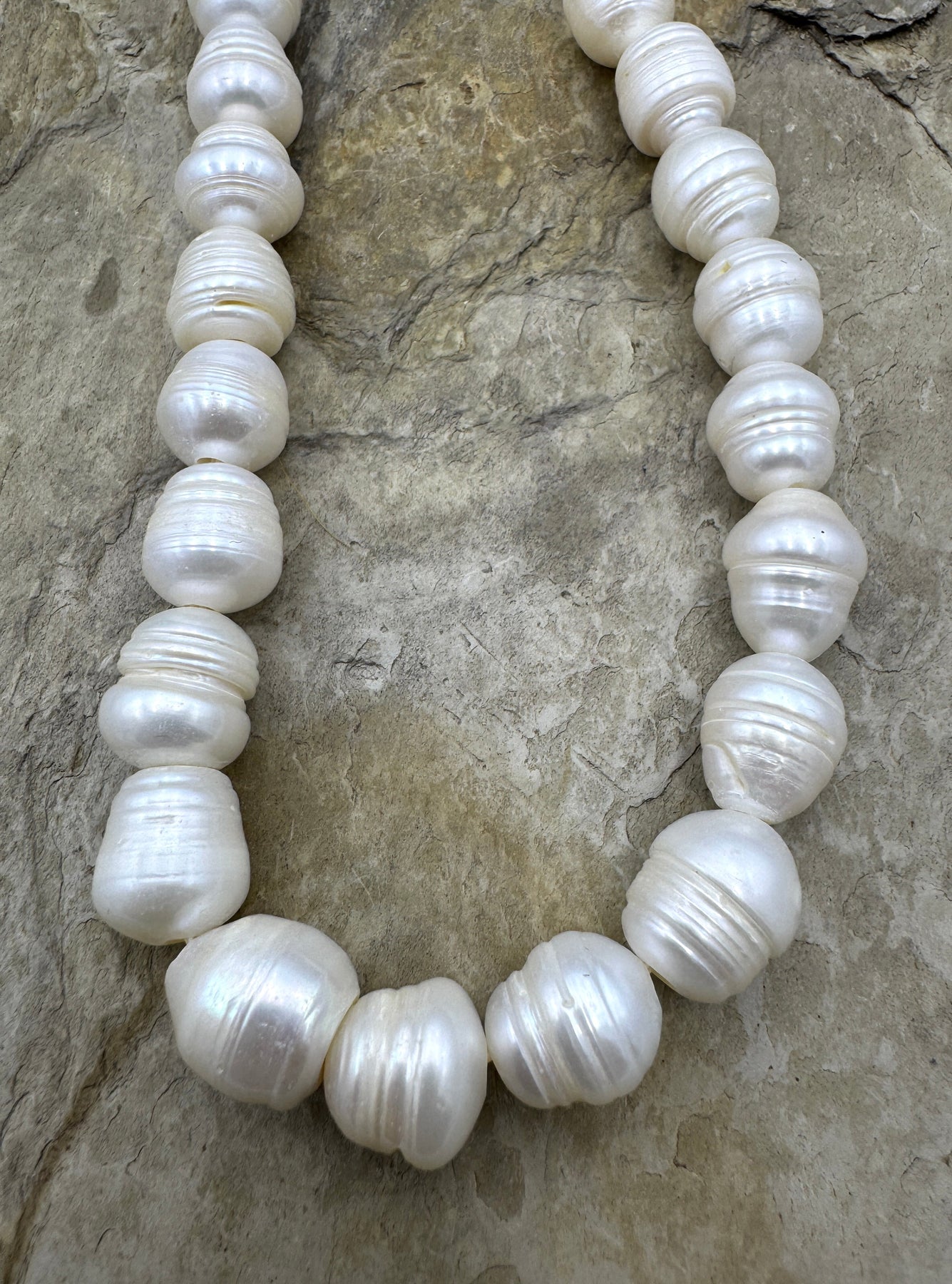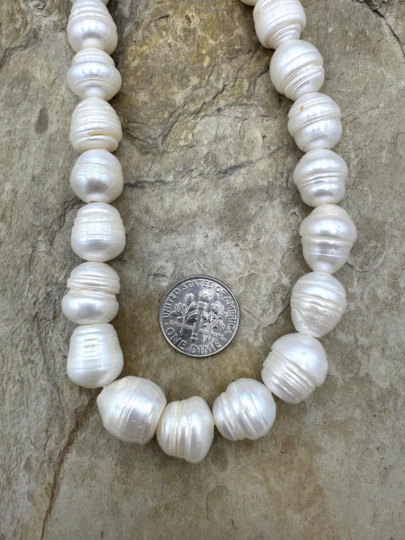 LOT of 7 BUttery White X-LARGE 12-14mm (Large Hole) Ringed Pearls, 15 Inch Strand/31 Pearls