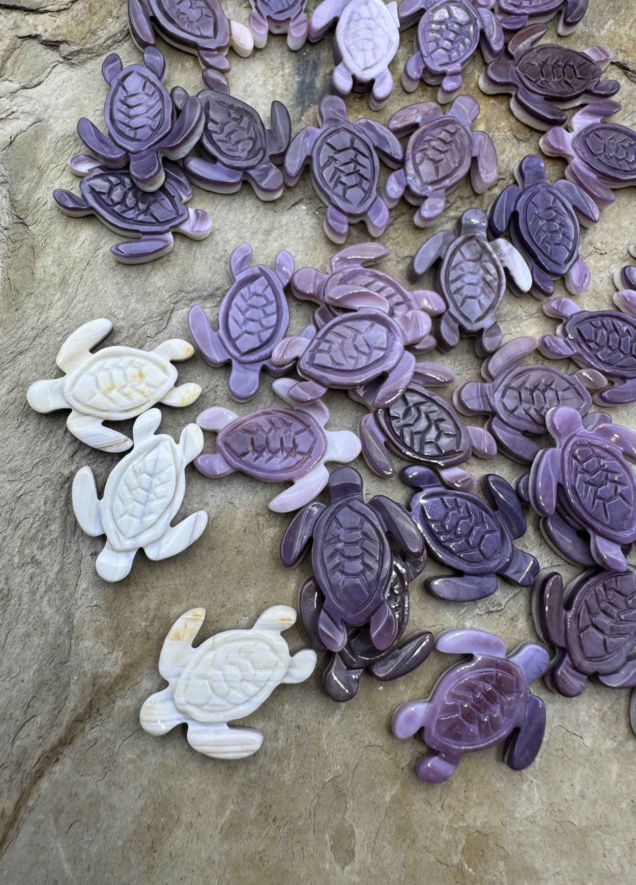 Purple Wampum/Quahog Shell Turtle Beads 15x20mm , Package of 2 Beads