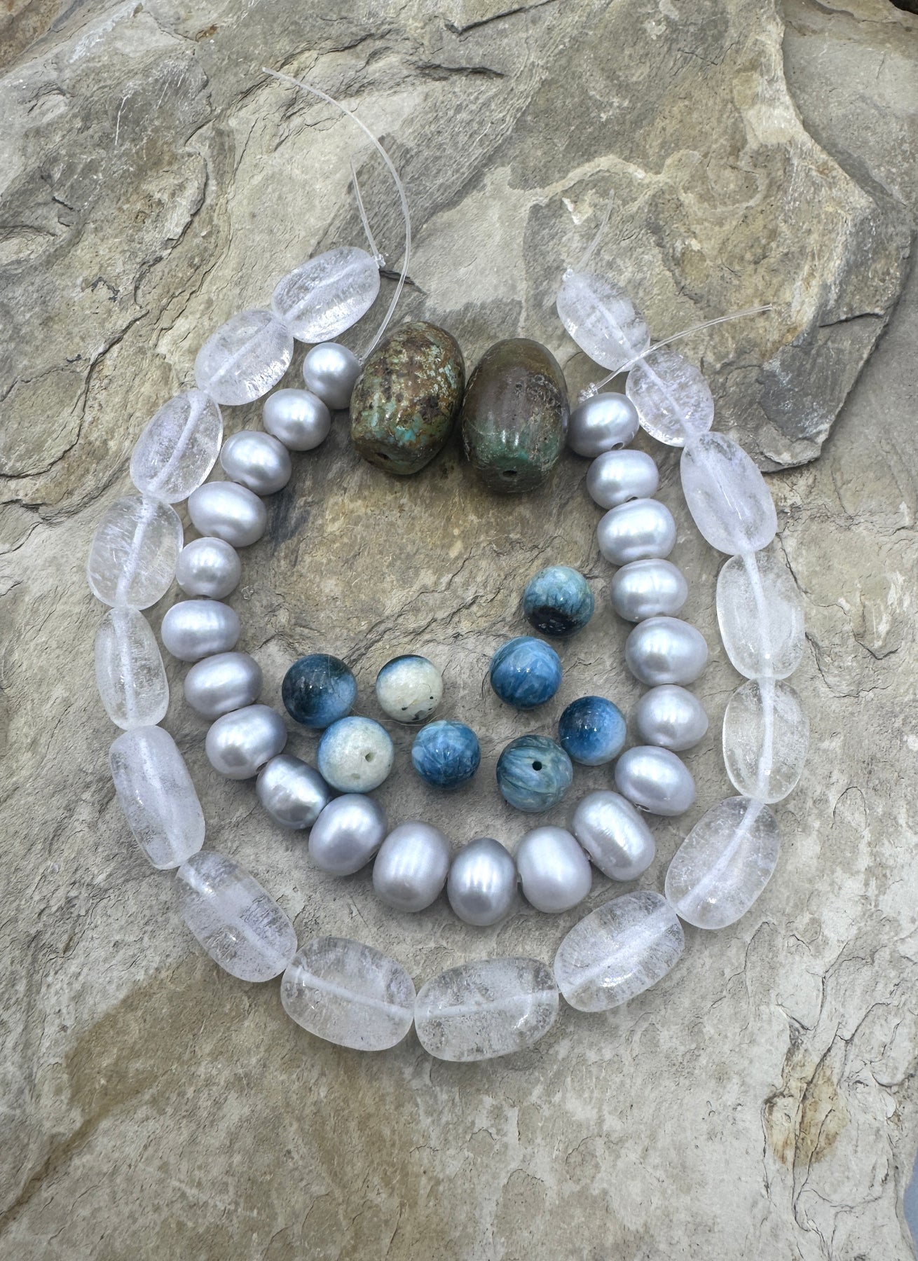 CLOSEOUT LOT of Mixed Beads, Freshwater Pearls, Chrystal, Turquoise and Blue Ice Glacierite