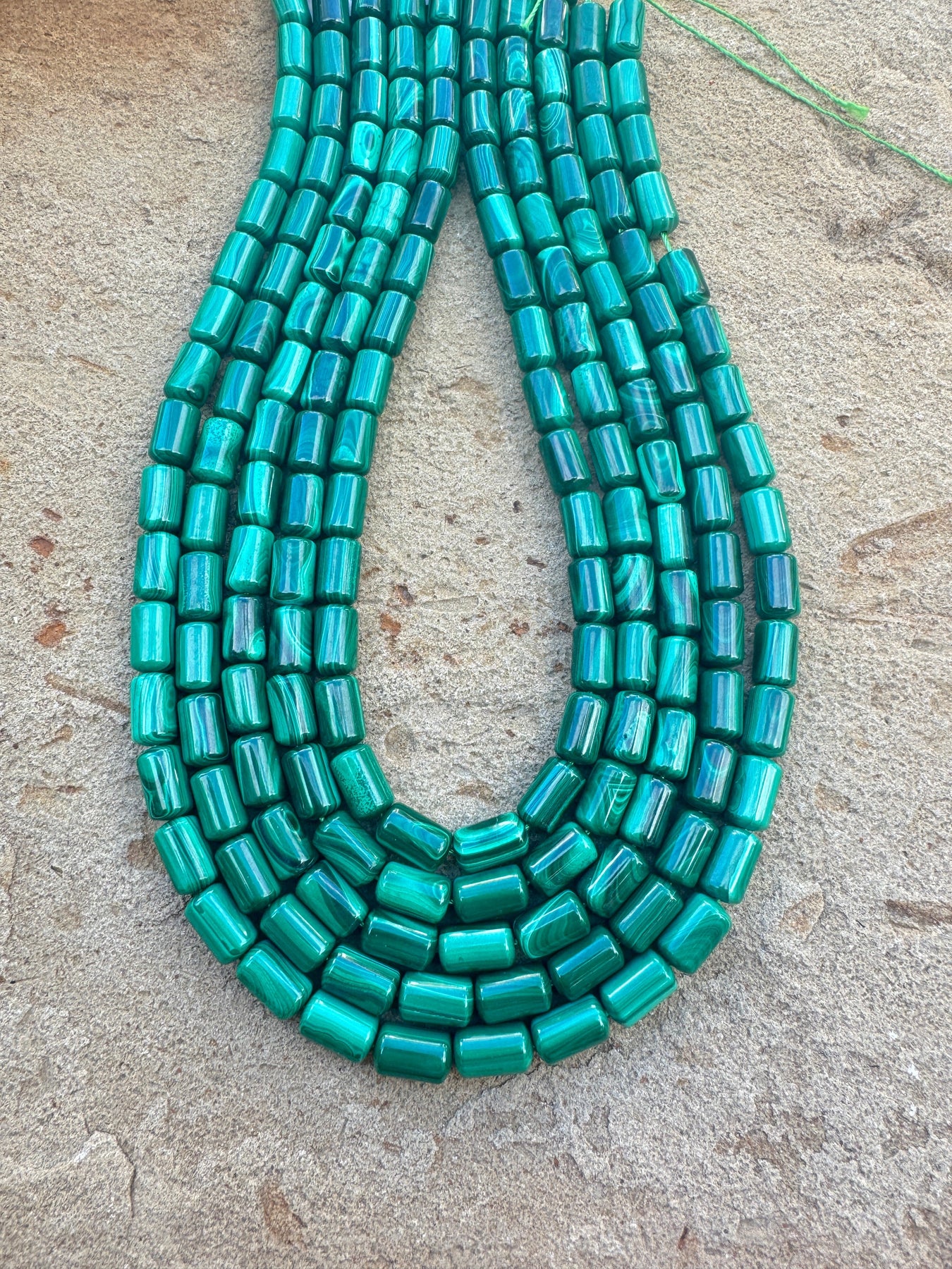 High Quality Malachite 6x10mm Tube Beads, 15.5 inch Strands