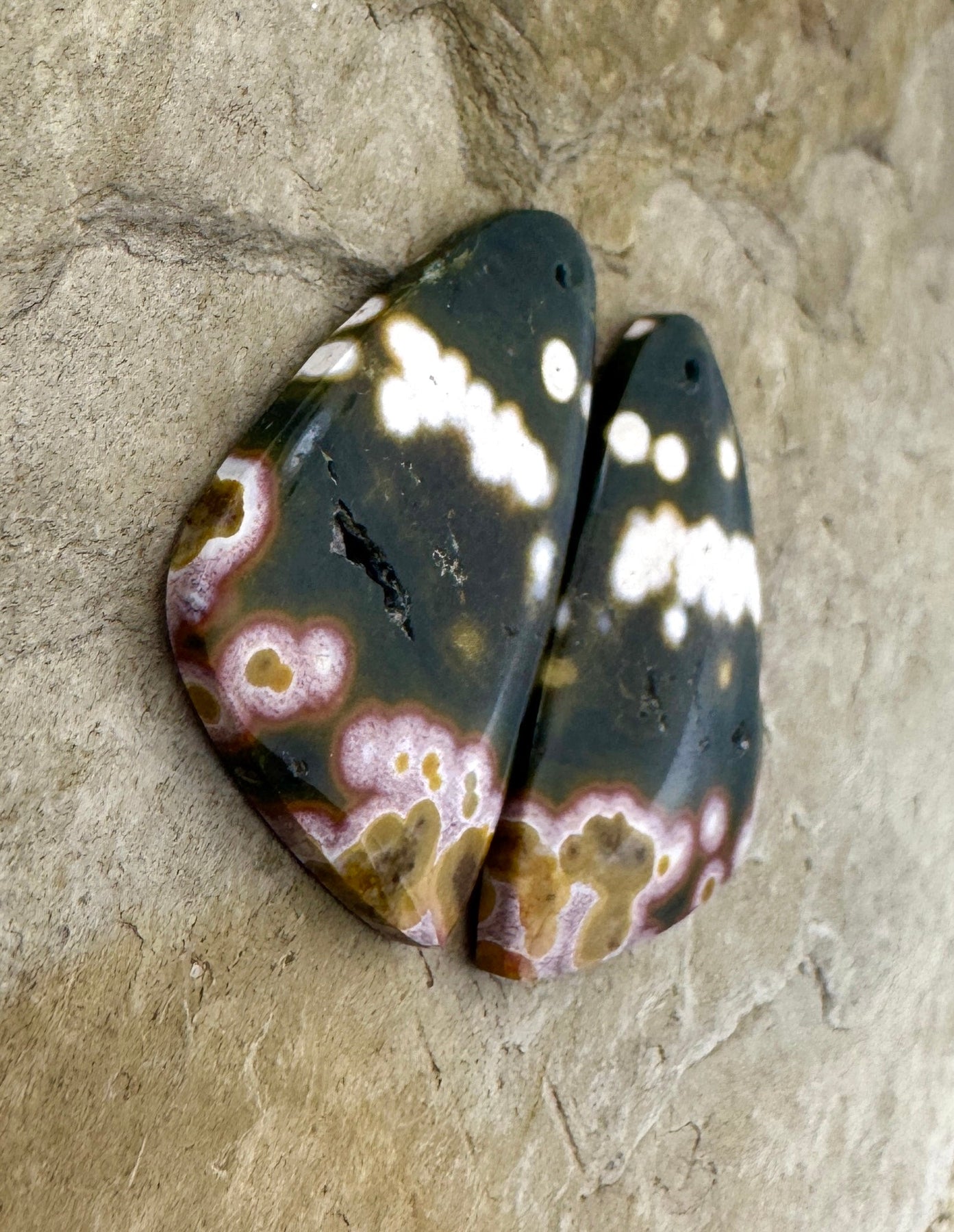 High Quality Ocean Jasper BIG Matching Earring Slab Bead Pair 21x34mm