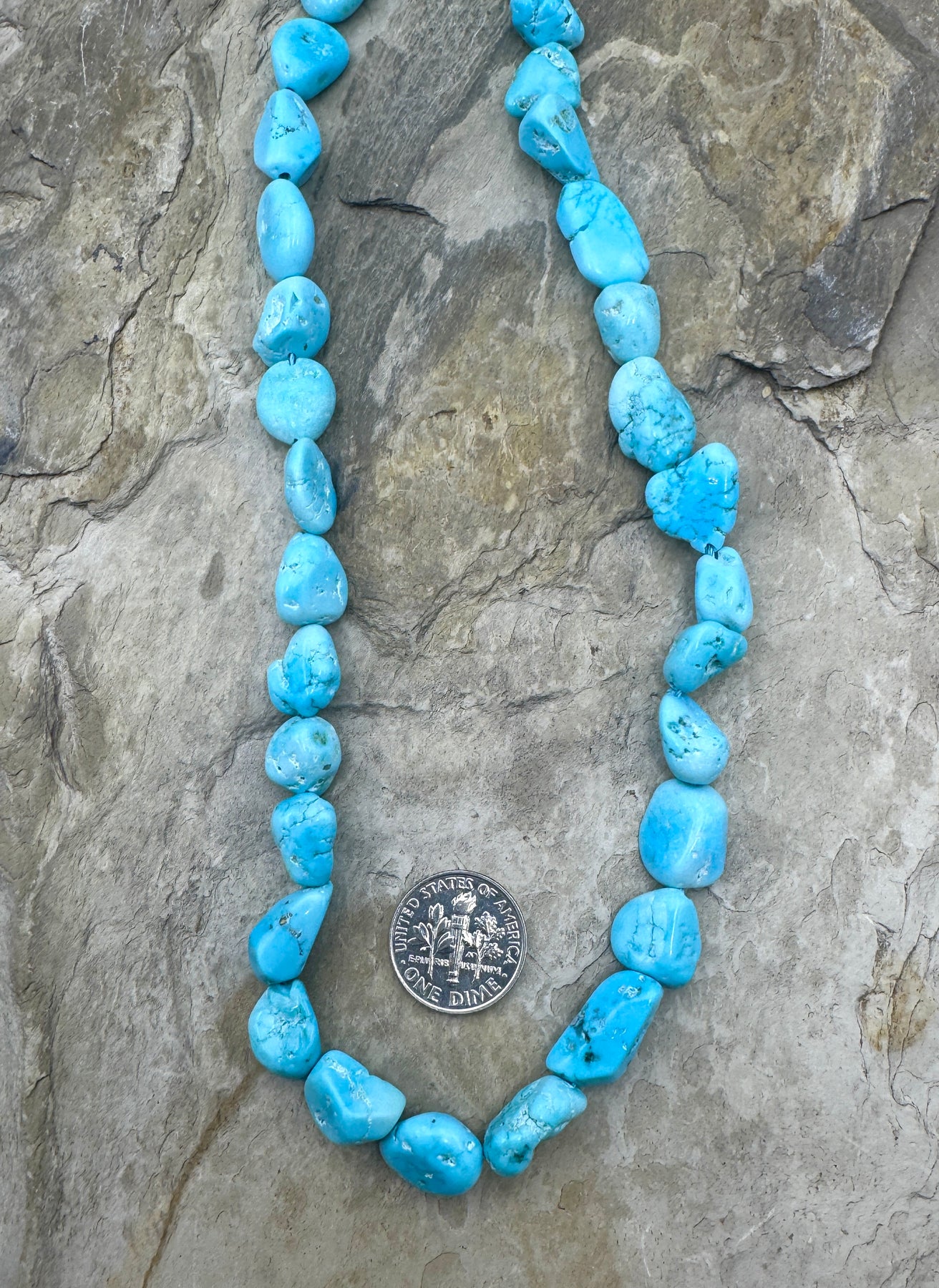 Natural Sleeping Beauty Turquoise (AZ) BIG 7x12-11x13mm Graduated Nugget Beads, 15.5 Inch Strand /32 Beads