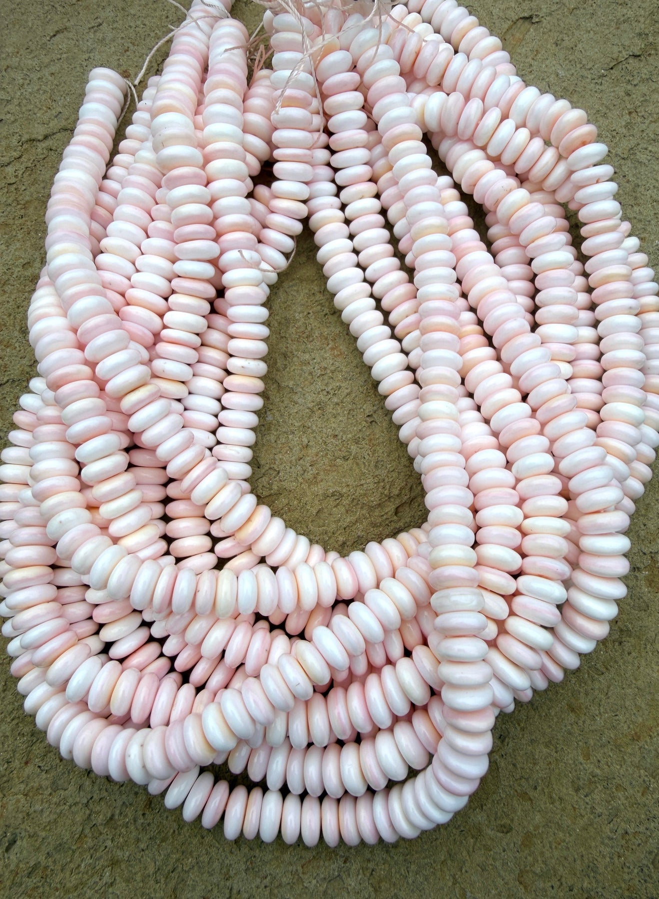 Pink Queen Conch Shell 10mm Rondelle Nugget Bead Strand (16 inch Strand)