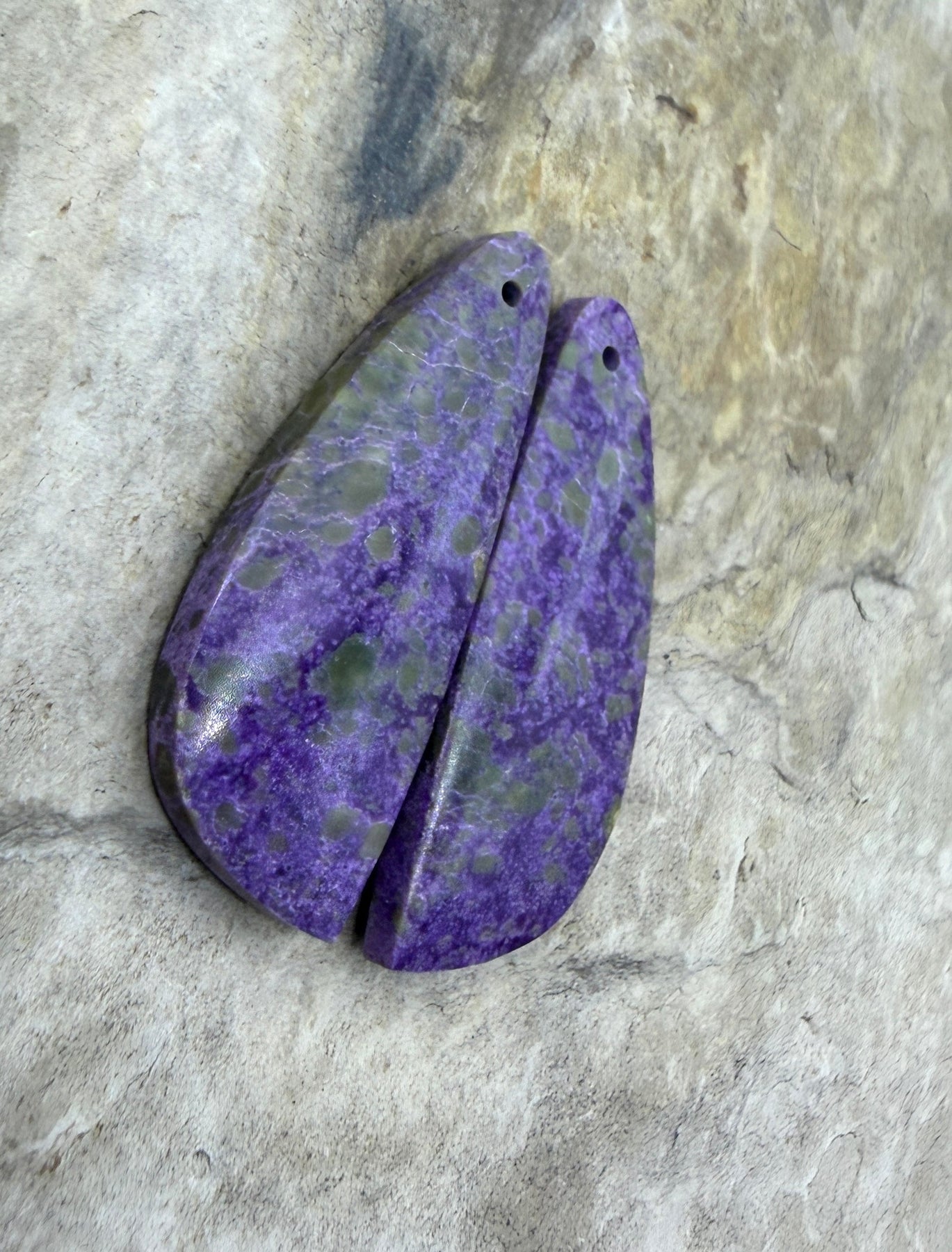 Stichite/Atlantisite (Australia) Matching Earring Slab Bead Pair (12x31mm)