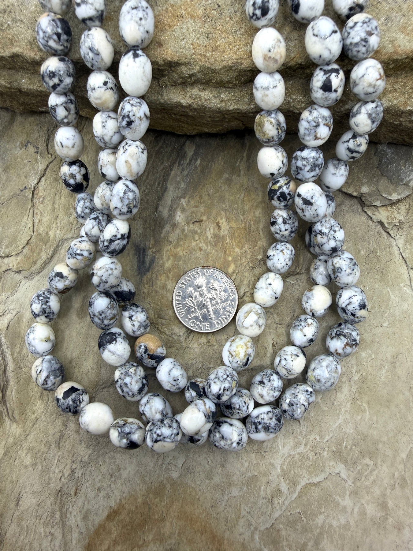 RARE High Quality White Buffalo Graduated Rounded Nugget Bead Strand, 7x7mm-7x9mm, 16 Inch Strand/45-49 Beads