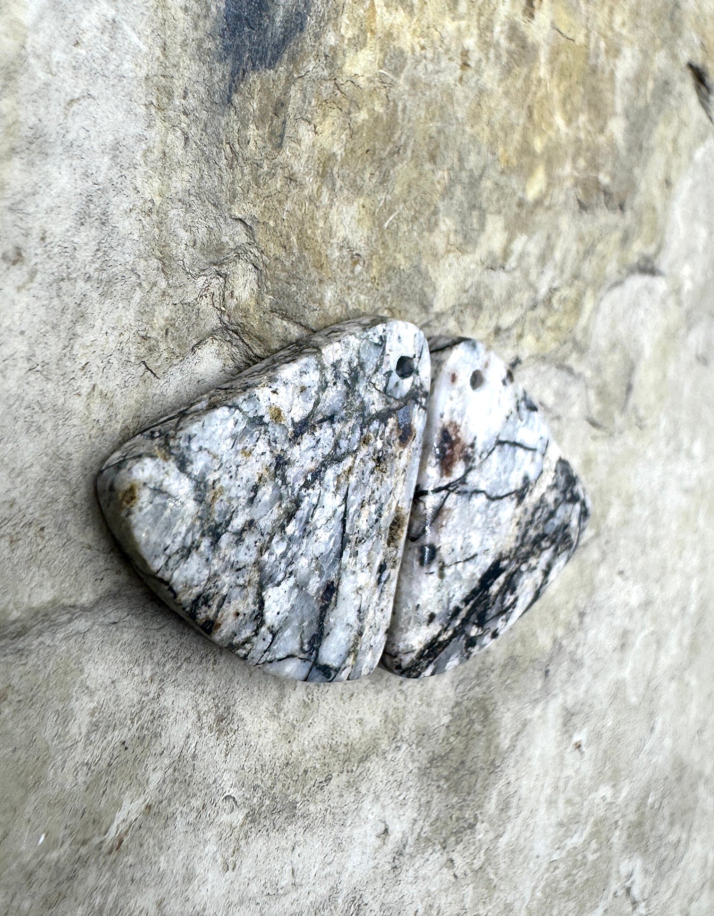 RARE White Buffalo (Arizona) Matching Earring Slab Bead Pair 20x20mm