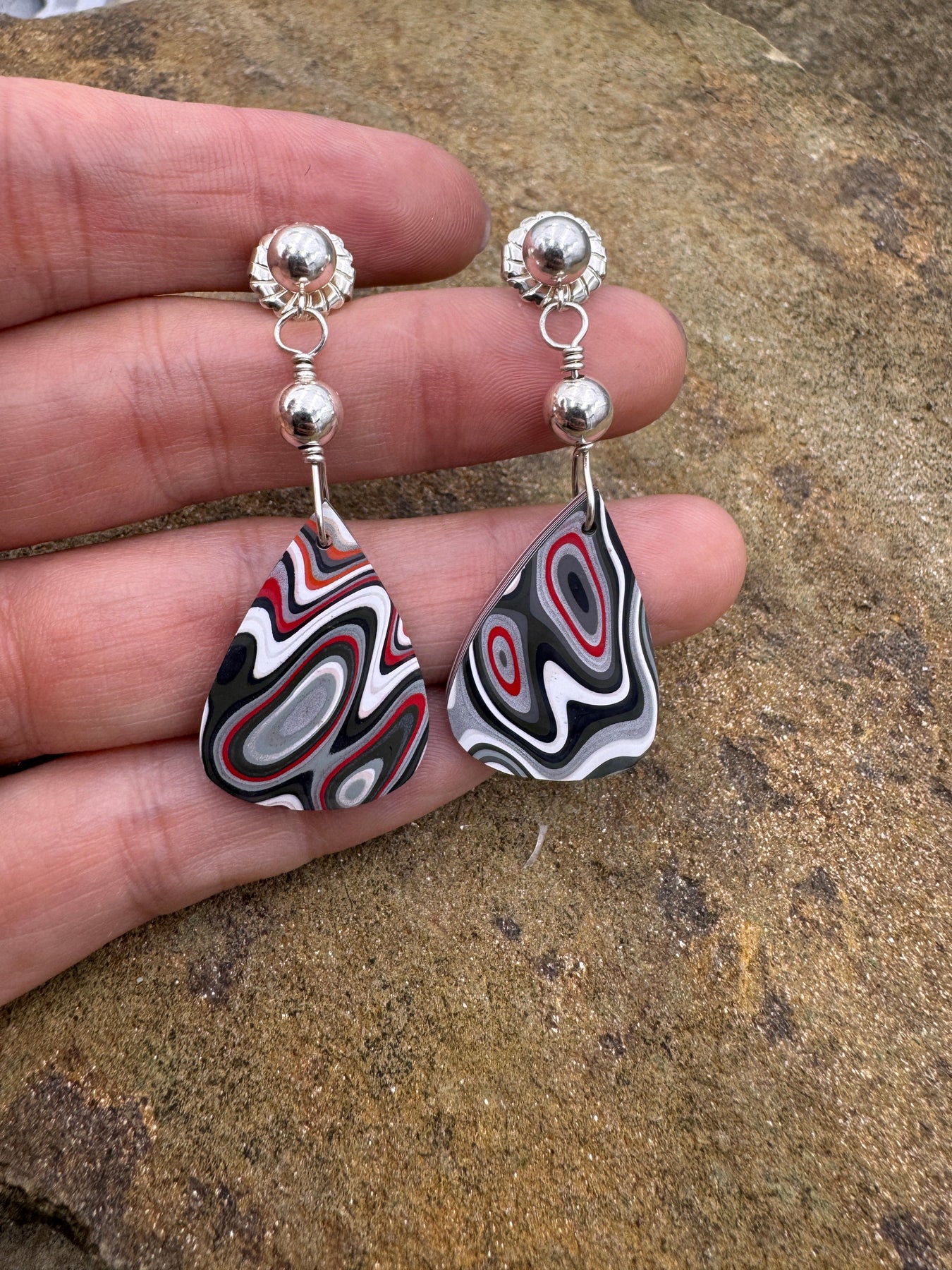 Heidi White Designs Fordite and Sterling Silver Earrings