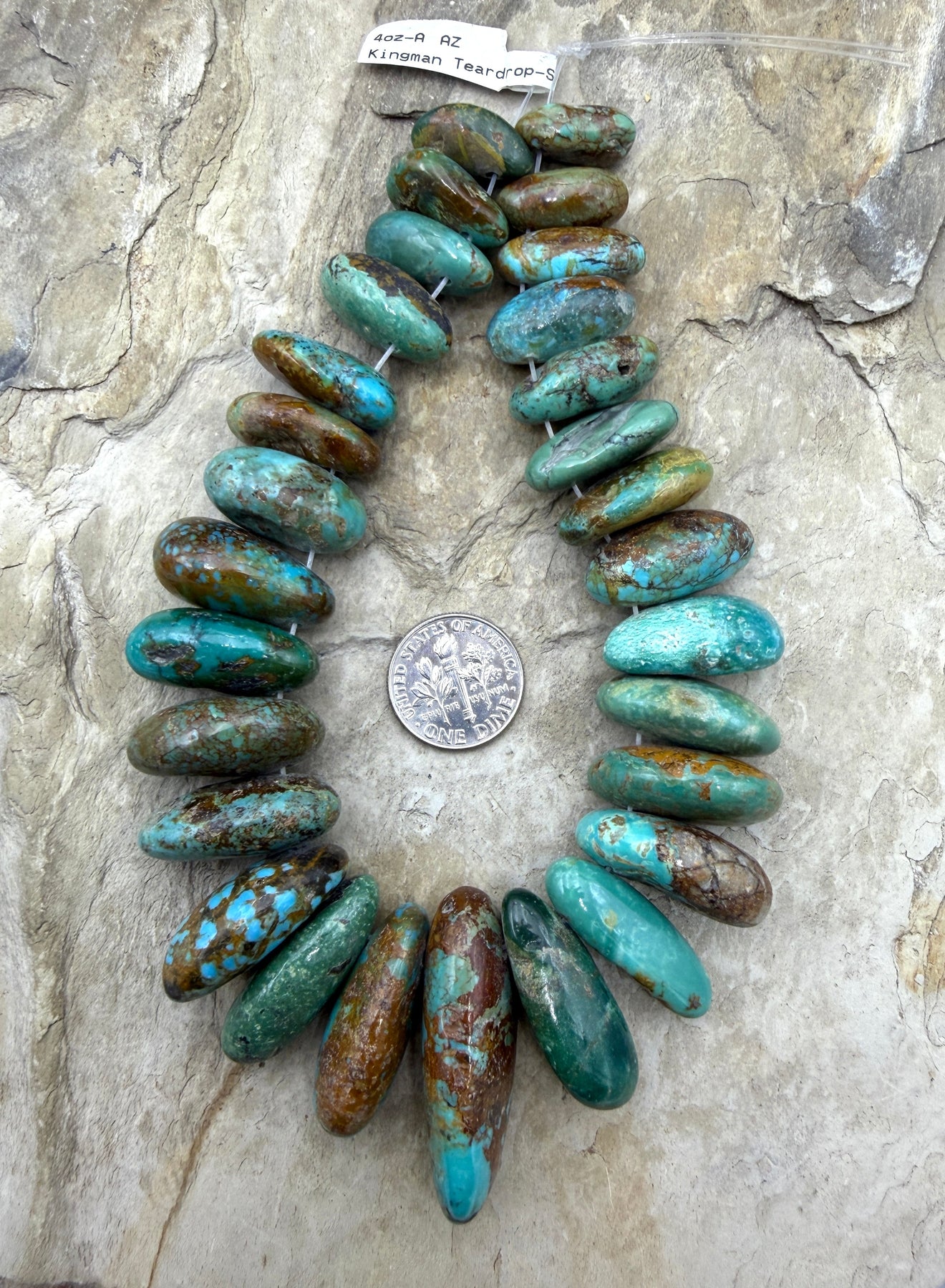 Kingman Turquoise (Arizona) BIG Graduated Focal Strand 8x17-13x37mm Long Teardrop Nugget Beads, 9 Inch Strand/28 Beads
