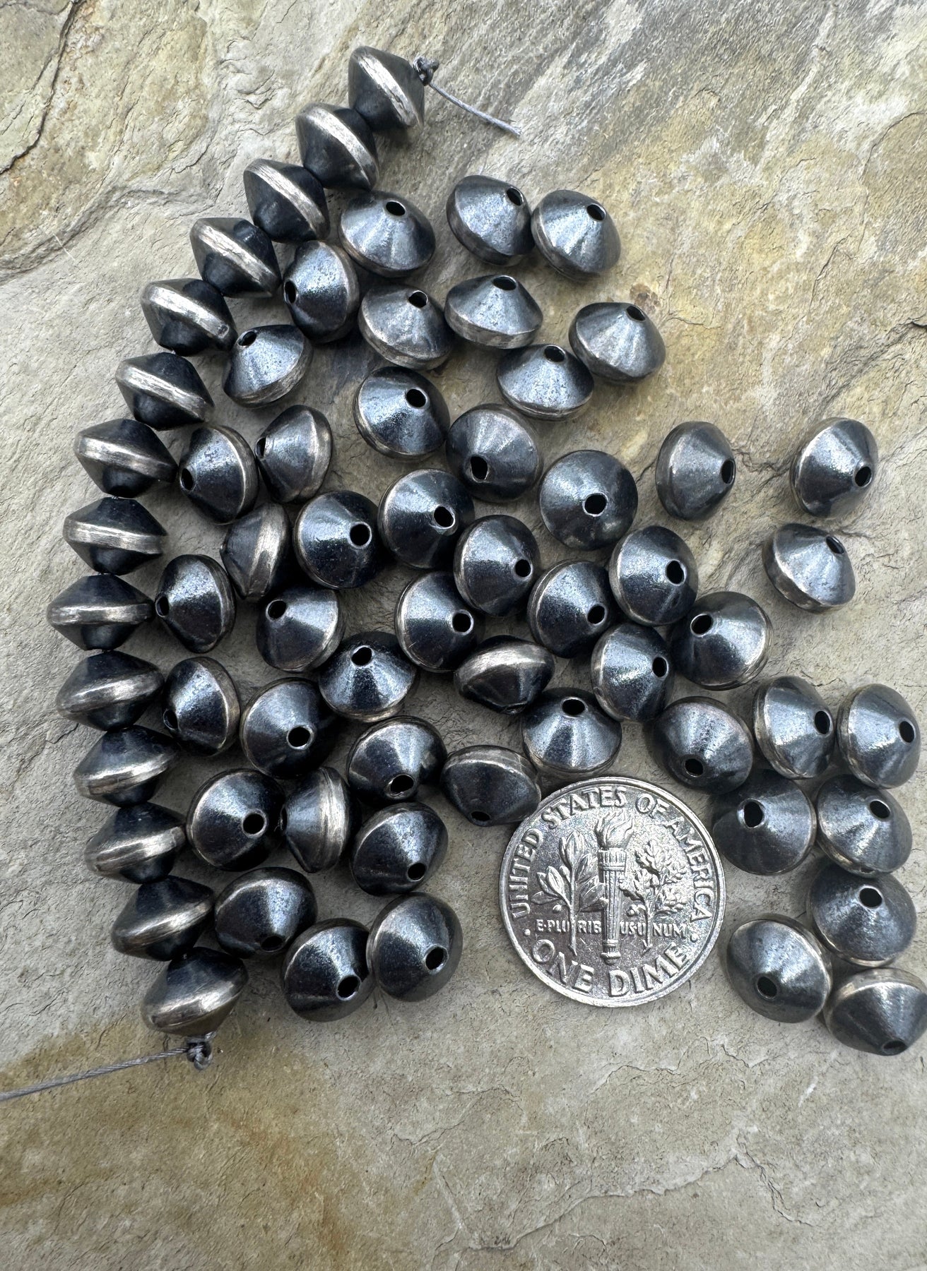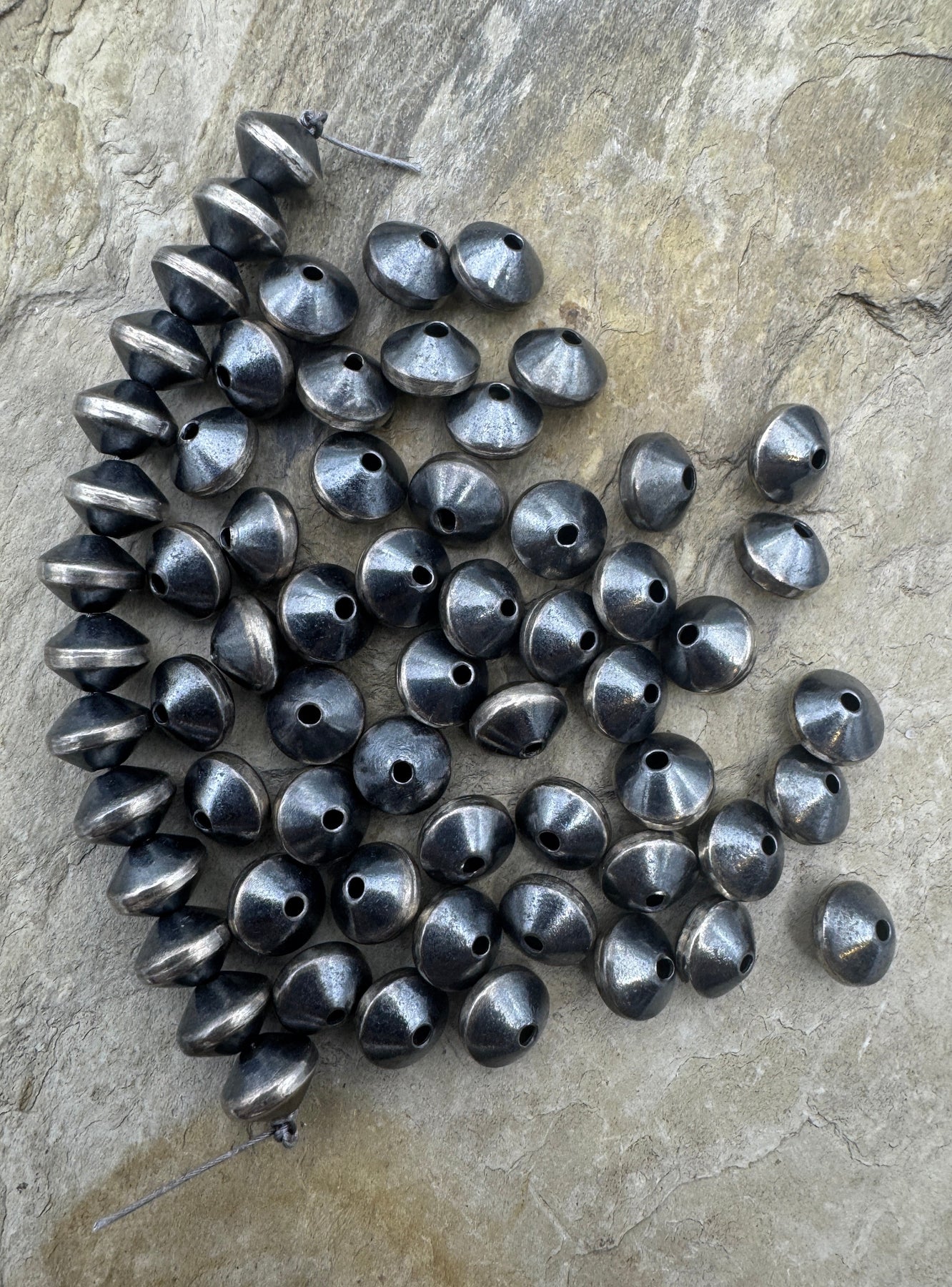 Navajo Style Pearls Sterling Silver Thick Saucer/Bi-cone Beads 8mm (PKG of 5 beads)