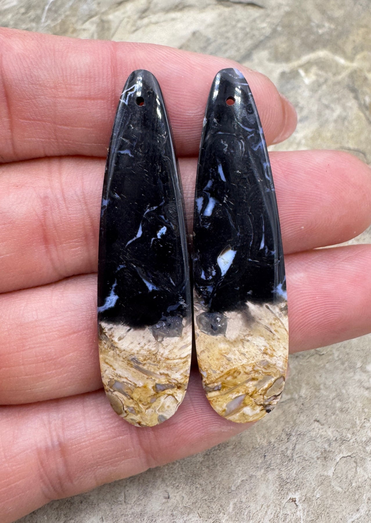 Petrified Palm Root Matchimg Earring Slab Bead Pair 13x50mm