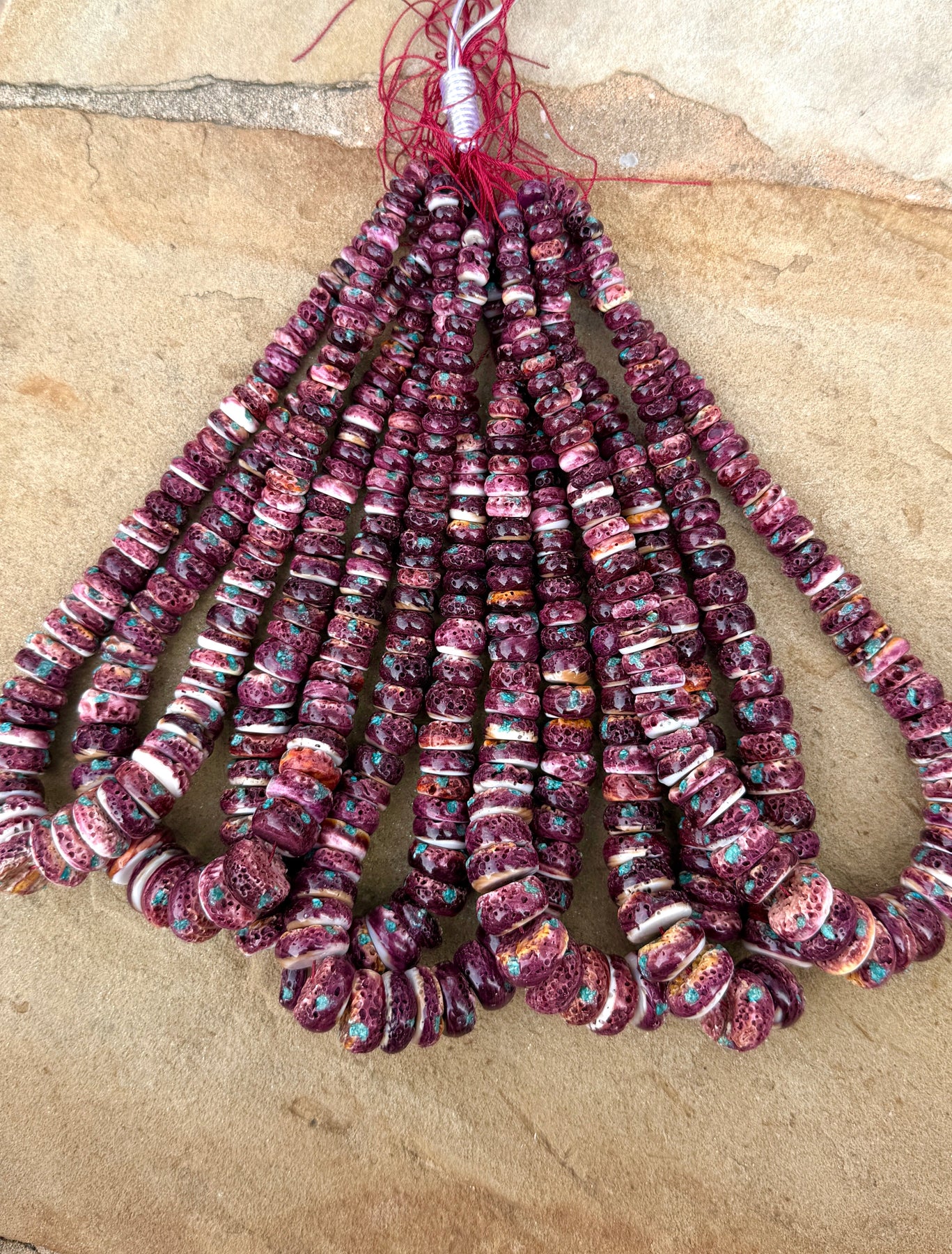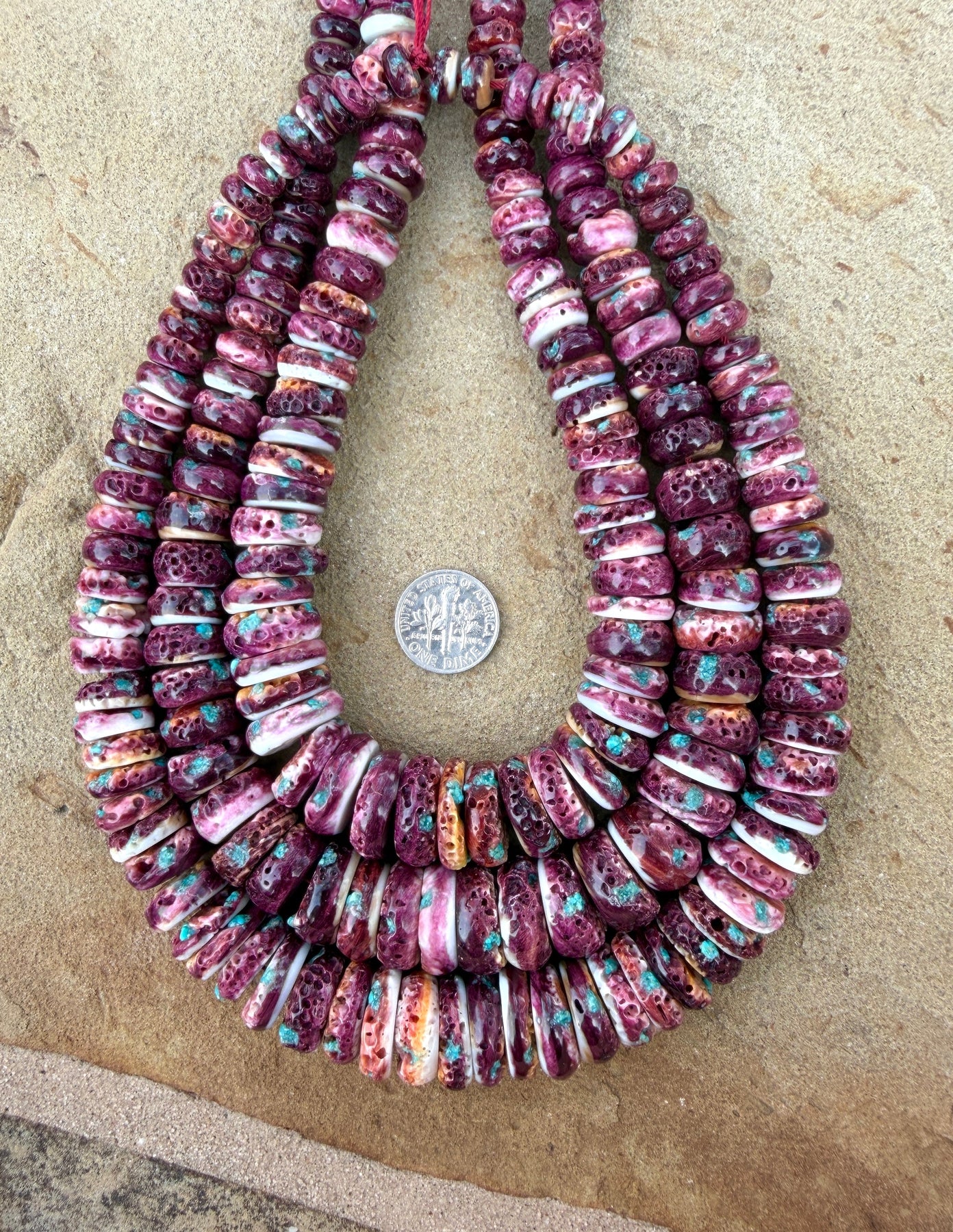 Purple Spiny Oyster With Turquoise Inlay BIG Graduated Rondelle Beads 8-18mm, 16 Inch Strand