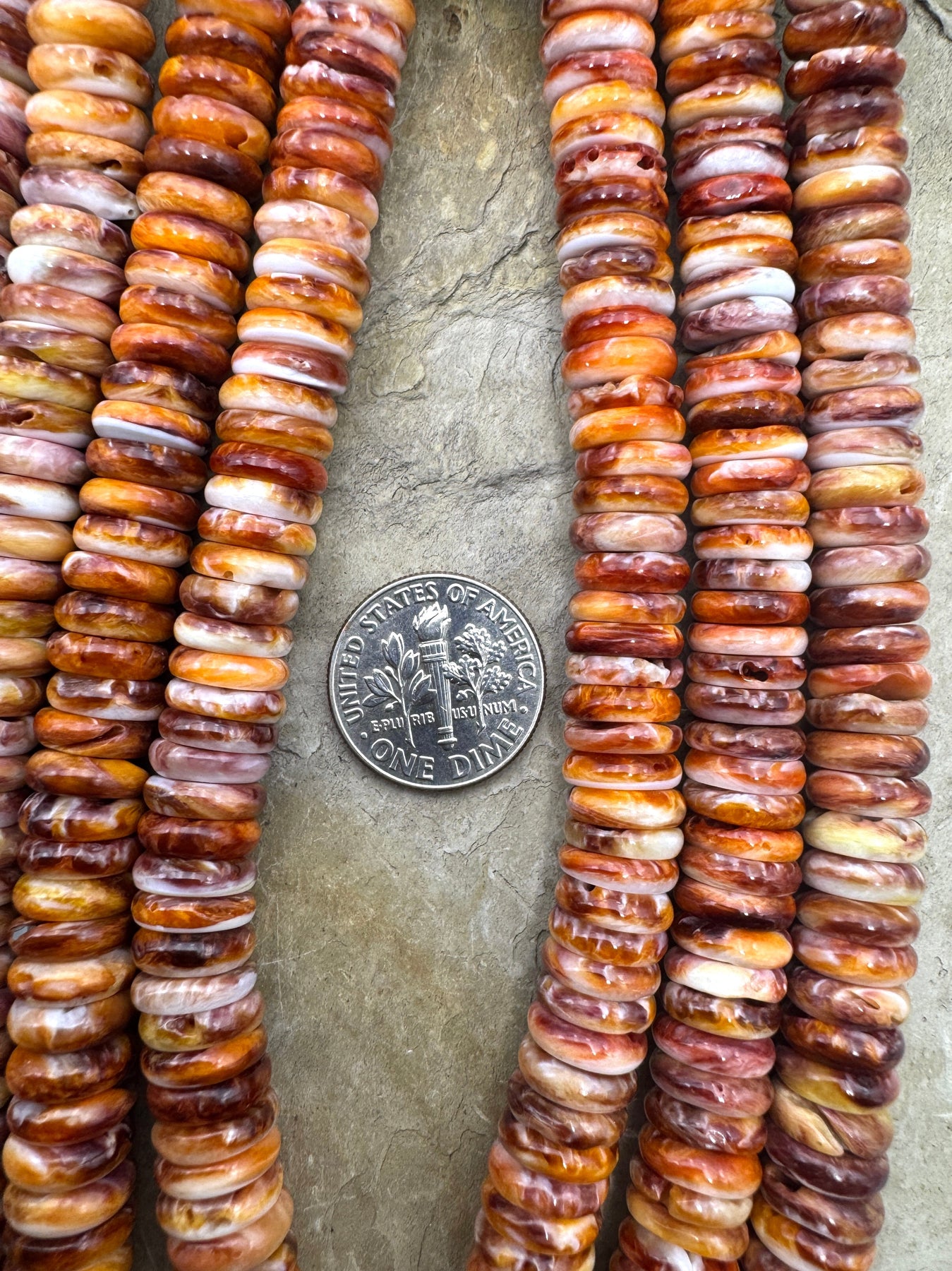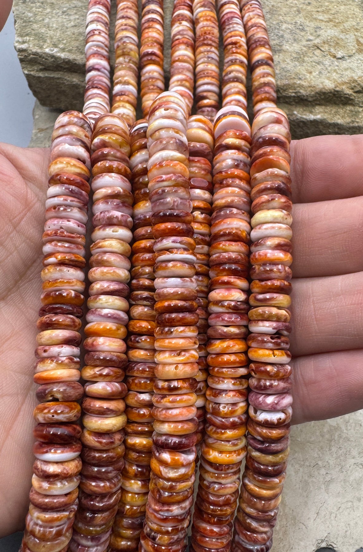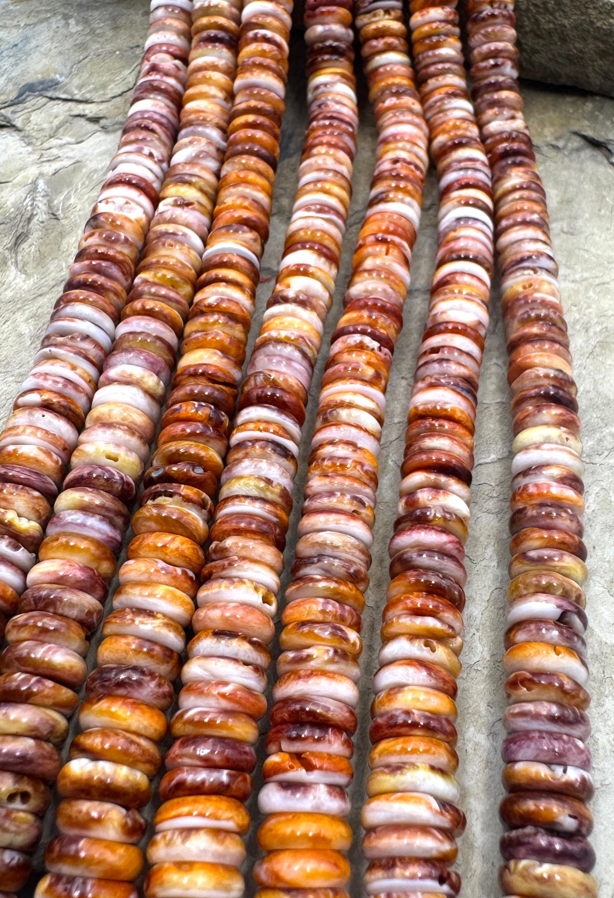 Spiny Oyster shell comes from the Sea of Cortez in Mexico and has always been a favorite of the Native American Indian jewelry artists and can be found in various shades of orange, red and purple. There are limited suppliers for the Spiny Oyster beads and cabochons and we always try to hand pick these strands to eliminate as much white on the beads as possible.