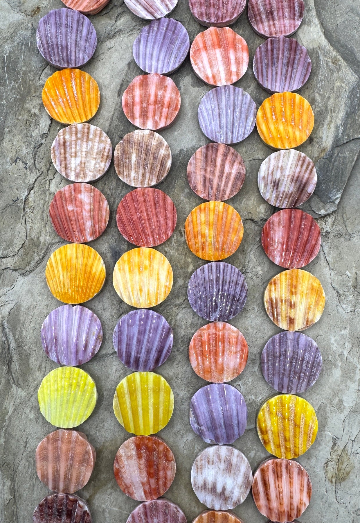 Natural Pecten Shell 19mm Coin Beads, 8 inch Strand/10 Beads
