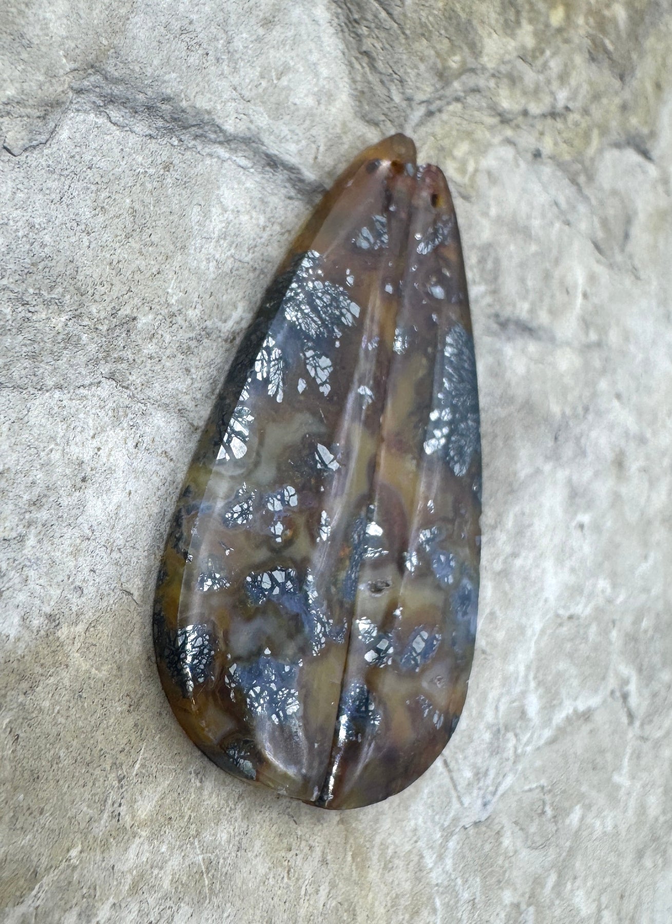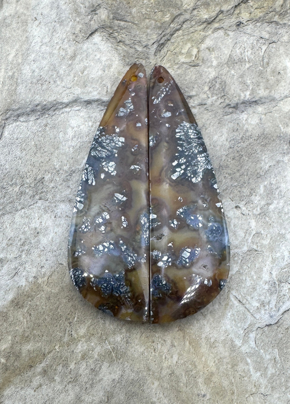 Red/Yellow Macasite Pyrite Matching Earring Slab Bead Pair, 12x42mm