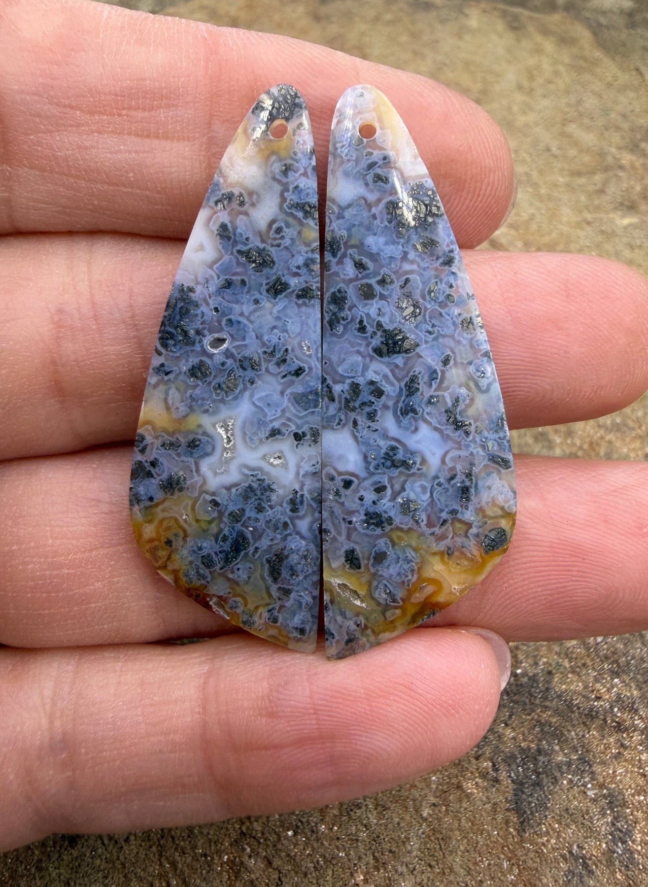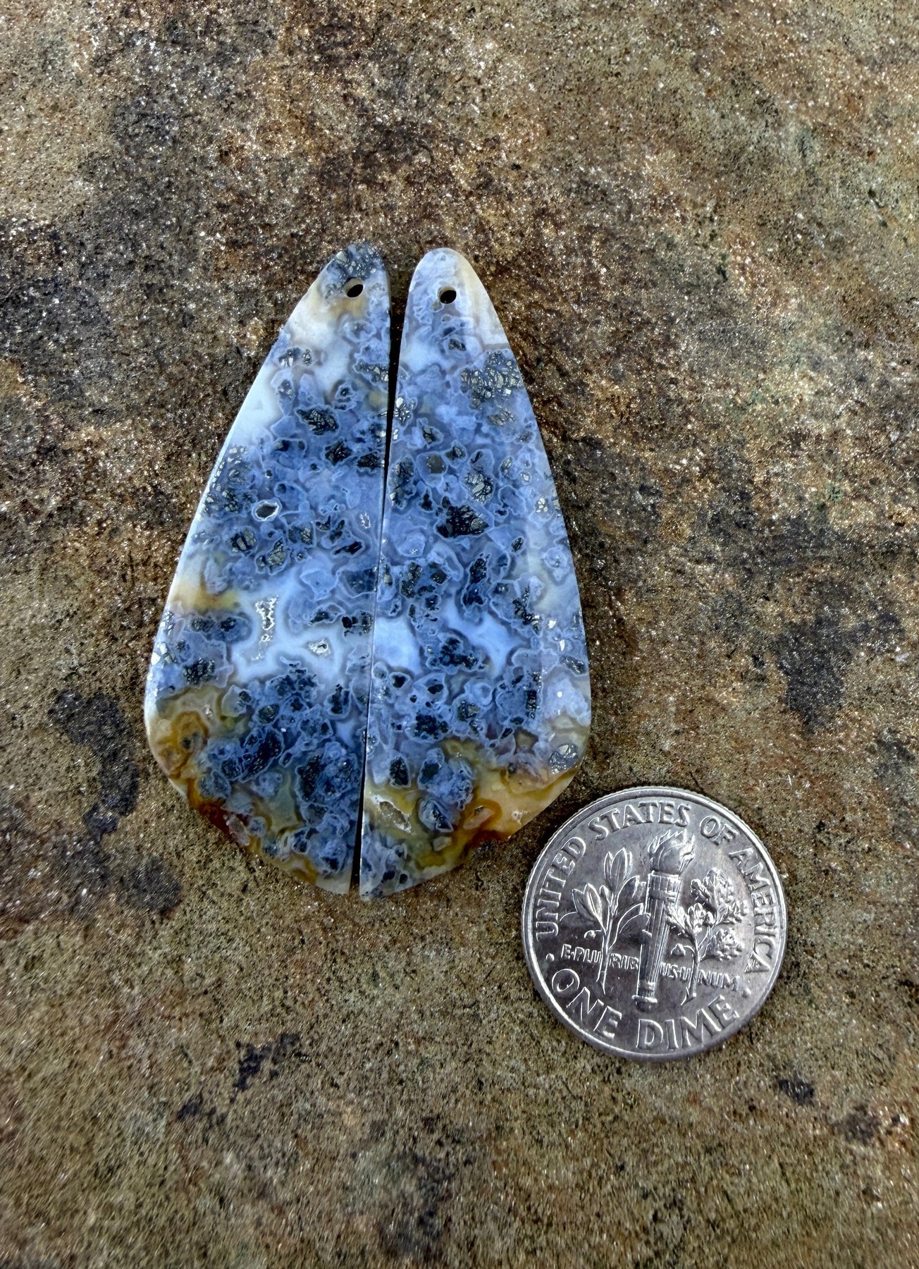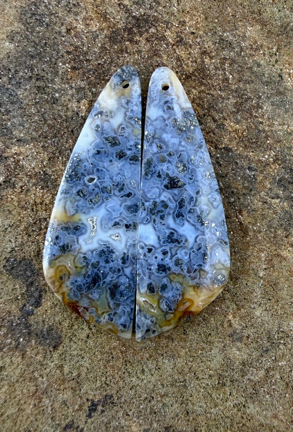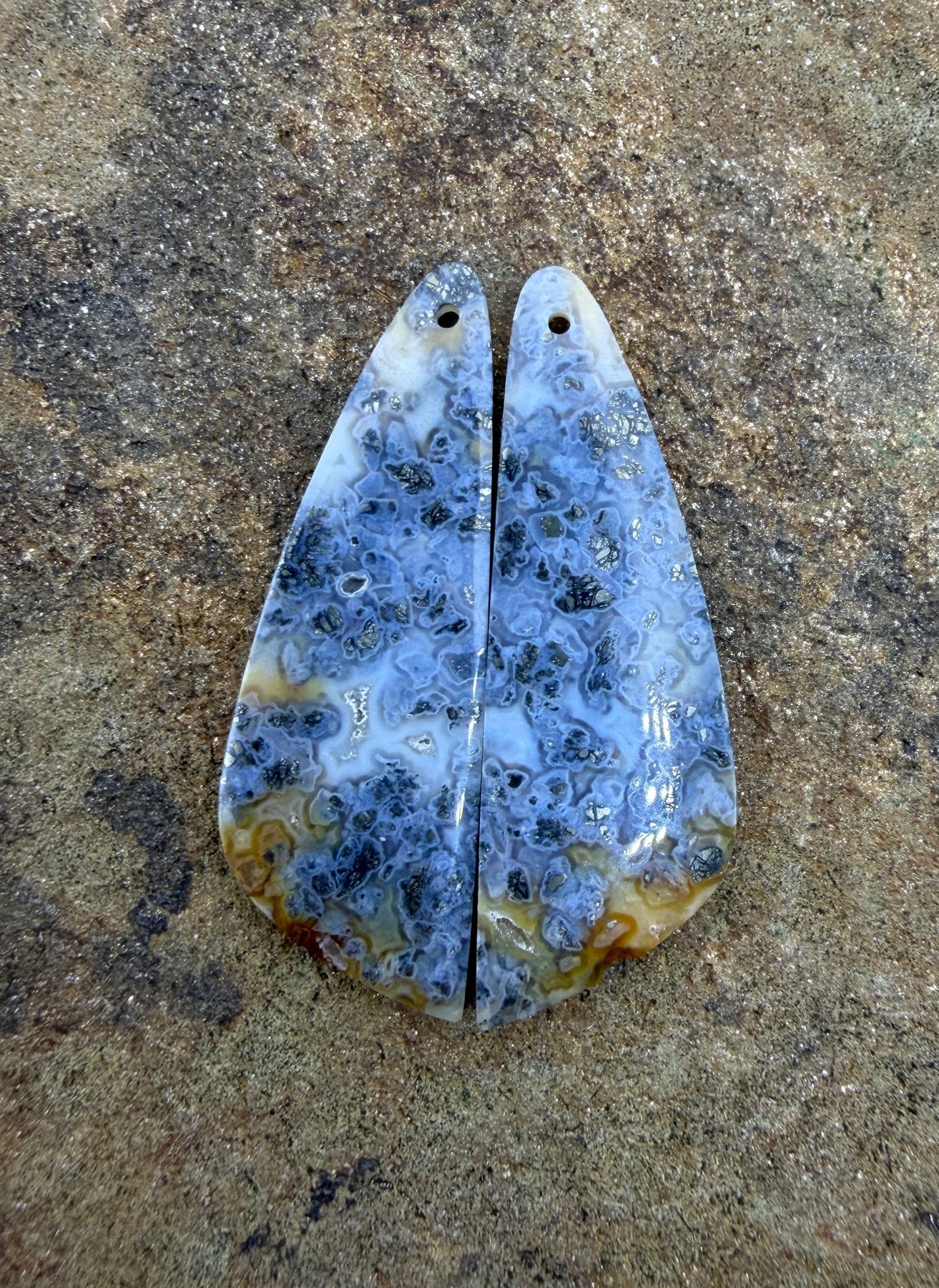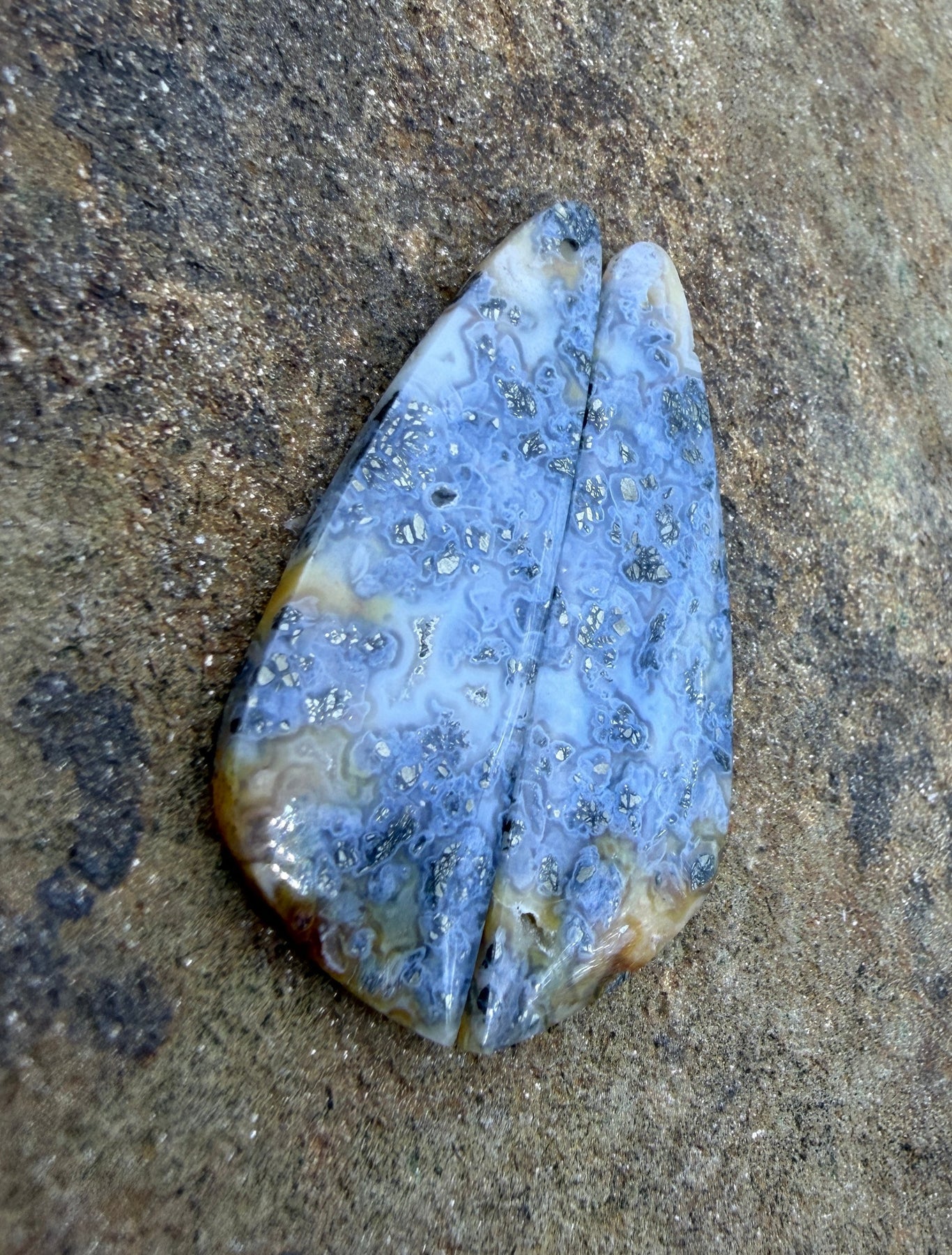 Macasite Pyrite Matching Earring Slab Bead Pair 15x42mm